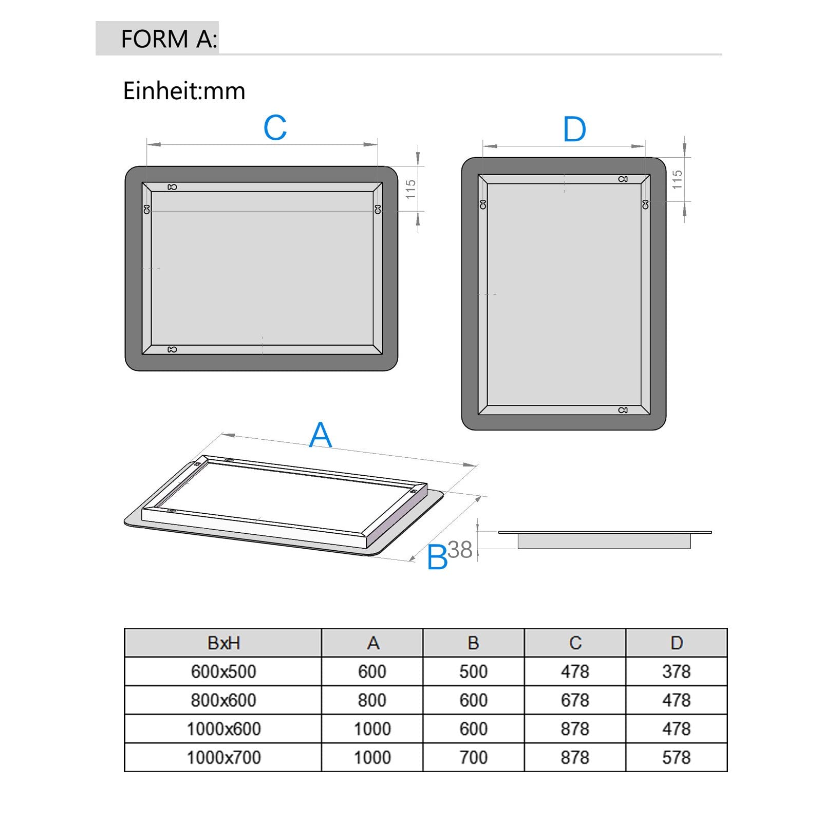 ["Versatile Size: The LISA LED bathroom mirror has a generous size of 60x50/50x60 cm and can be mounted vertically or horizontally to fit perfectly in your bathroom, toilet, bedroom, hallway, or living room.","Adjustable Light: The mirror offers three different light colors to choose from: Cool White (6500k) / Neutral (4000k) / Warm White (3000k), which can be adjusted by a short touch. Furthermore, a longer touch allows you to adjust the light intensity to create the desired atmosphere.","Anti-Fog Function: Thanks to the integrated anti-fog function, the mirror remains clear and free from annoying condensation even after a hot bath or shower. Pressing the defrost button automatically heats the mirror surface to prevent condensation formation.","Durable LED Lighting: The mirror's LED light strip has an impressive lifespan of up to 50,000 hours, allowing you to benefit from high-quality lighting for years to come. Additionally, the mirror is waterproof according to IP44 standards to ensure safe use in the bathroom.","Mirror Switch: The mirror light can be turned on and off via a wall switch or by touch. The wall switch cannot change the color, but only control the on and off of the light."]