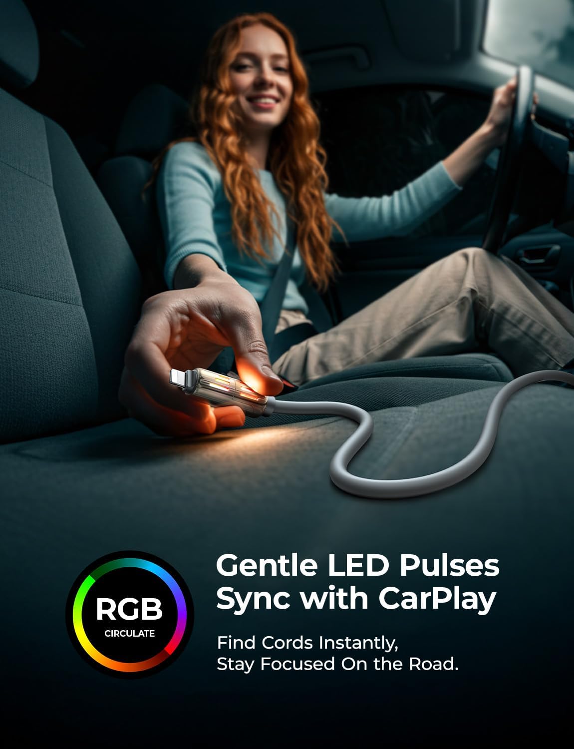 [PD3.1 Emark Safe Chip & RGB Light] The USB-C to USB-C cable EMARK3.1 chip not only enables 240W fast charging, but also maximizes device safety, ensuring 24-hour charging at a constant temperature. It automatically stops charging once the device is fully charged to prevent overcharging and battery damage. And RGB lights on both ports change colors while charging. It is a soft light, not flickering, creating a fun gaming atmosphere.