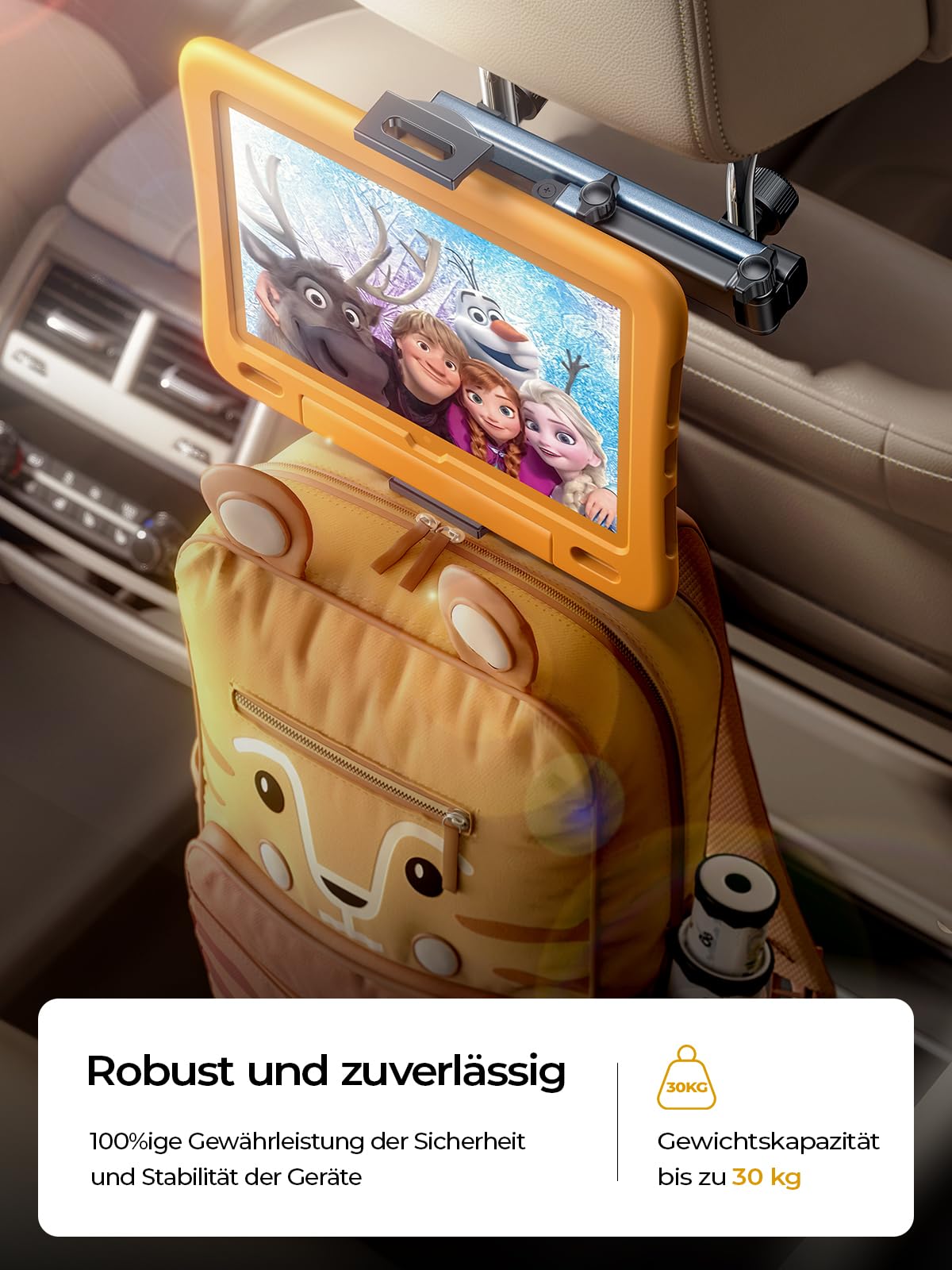 360° Rotation And Adjustment: Retractable field of view, kids can touch the screen from their seats. Only this one tablet car holder on the market has a stable and extended field of view, other car iPad holders easily fall off. The iPad holder for cars has a multi-angle rotation function to adjust the best viewing angle you want. The right distance also helps protect the eyesight of your children and family.