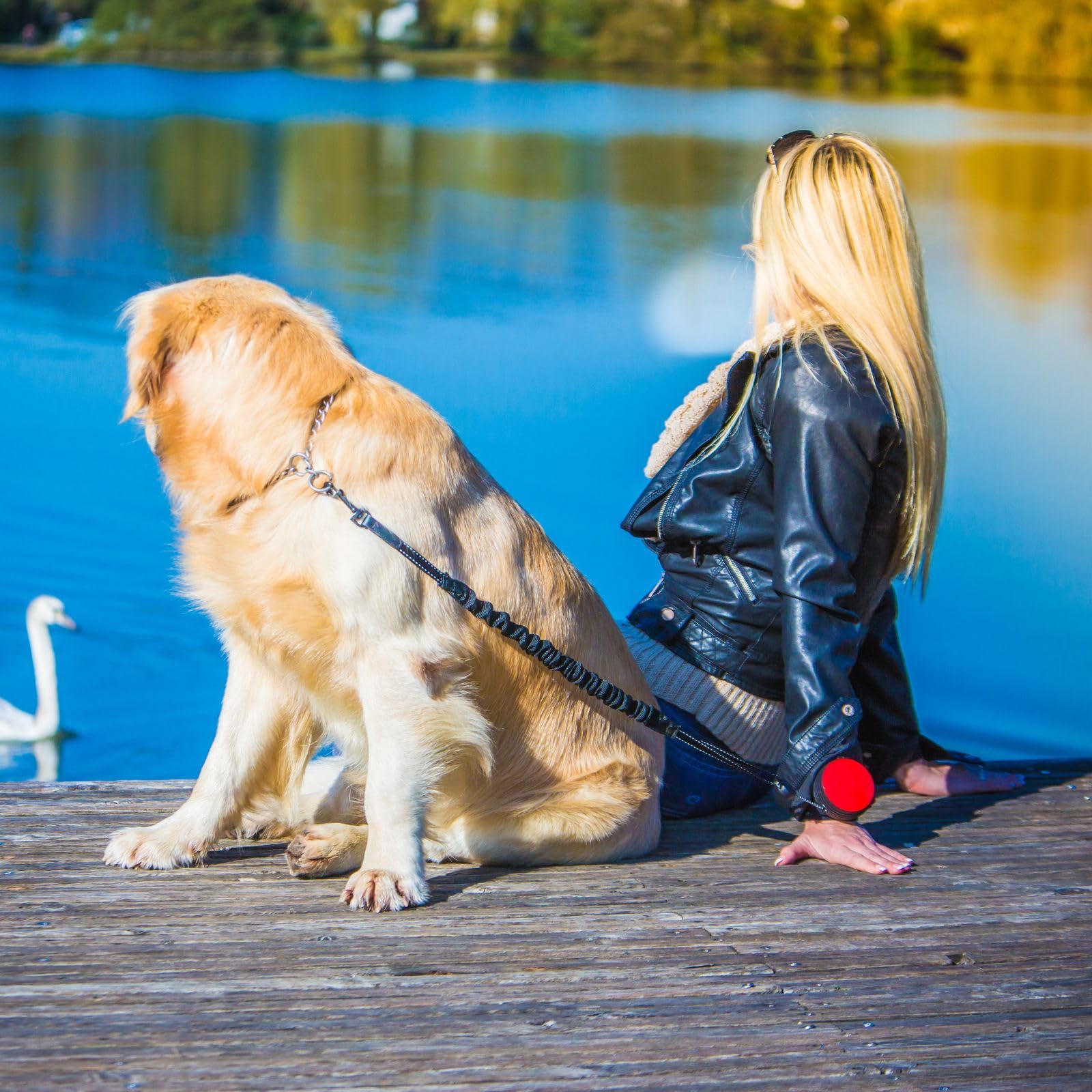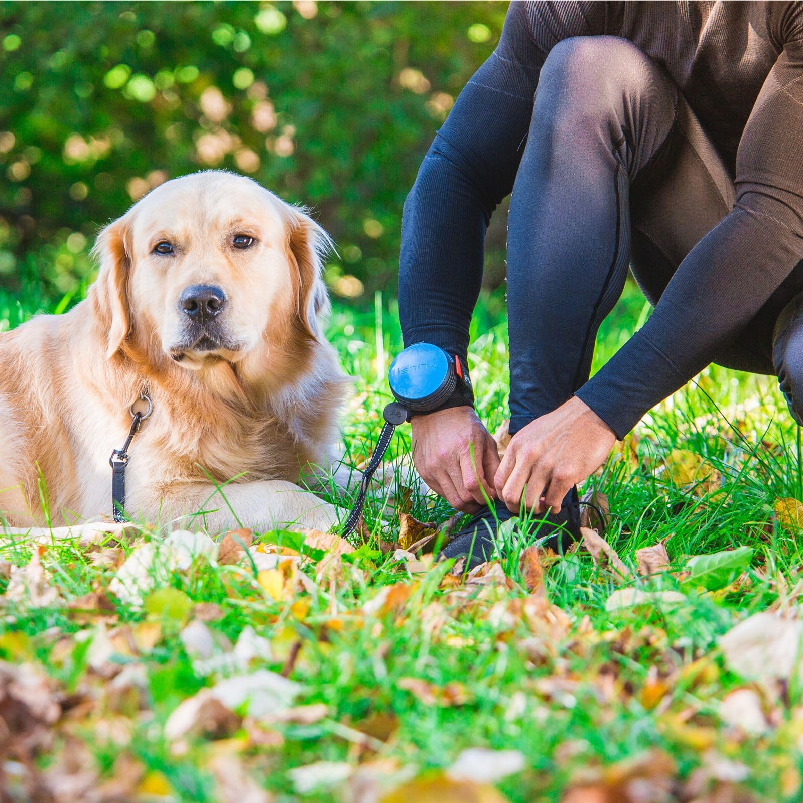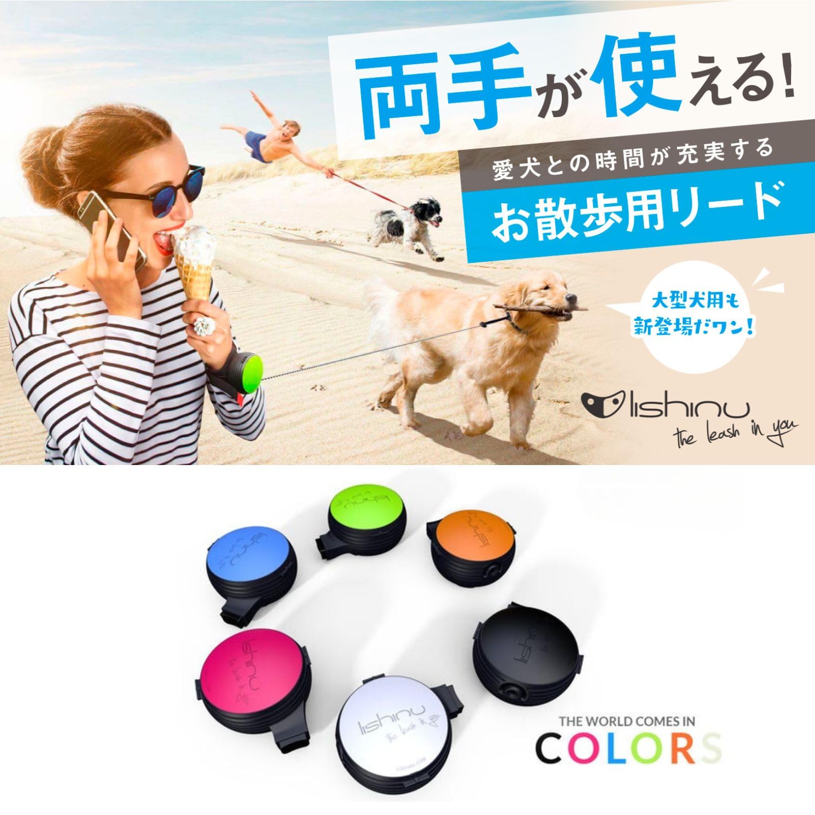 ["With bungee extension for strong (and pulling) dogs", "Absorbs the energy of the dog when pulling, preventing abrupt movements", "Ideal for jogging, Nordic walking, and other outdoor activities", "Patented Auto-Lock safety mechanism made of laser-cut stainless steel", "Interchangeable Lishinu covers in black, blue, and green", "Size L: 13-66lbs"]