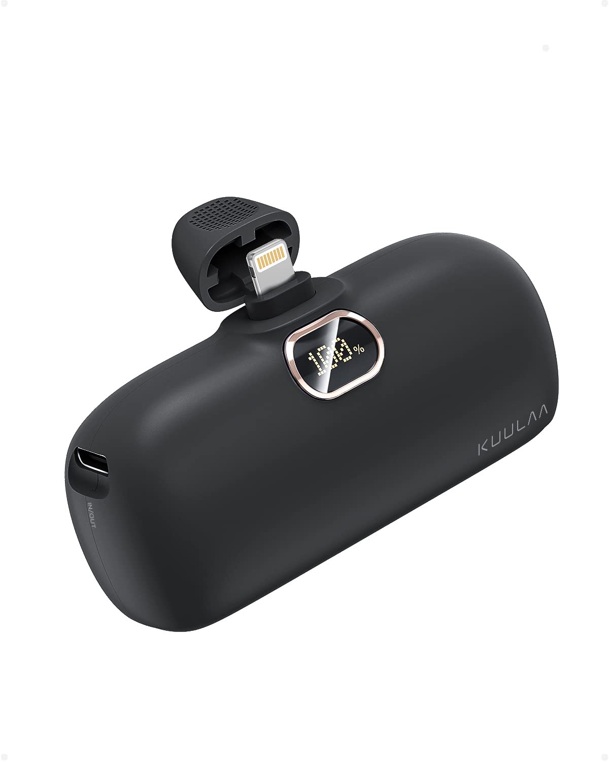 ["Fast charge for iPhone", "This is a mini power bank specially designed for iPhone. The built-in Lightning cable supports transferring up to 12W to the iPhone. Perfectly compatible with iPhone, simply plug in and charge. No need to carry extra cables.", "LED Display", "Stylish appearance design, smooth surface, and best texture make it elegant and unique. It also comes with a metal-coated LED display. The clear LED digital display gives you an overview of the remaining battery power."," Upgrade version USB C input & output", "The USB-C input supports fast charging protocols like QC 2.0/3.0, FCP, AFC, etc. The USB-C also has an output function of 5V2.4a (max), you can use the Type C charging cable to charge other Type-C devices. (⚠️ Not compatible with iPad model)", "Ultra-compact", "You don't have to carry a data cable with you. Power bank in mini size. Simply put it in your pocket, bag, or purse and save space in the bag. It is the perfect power bank for short trips, also great for daily use.", "What you get", "1 x Kuulaa 5000mAh power bank, 1 x user manual, 1 x USB-C charging cable. Customer satisfaction is our constant pursuit. If you have any problems after receiving it, you can contact us at any time. We will respond to you within 24 hours and do our best to solve your problem."]