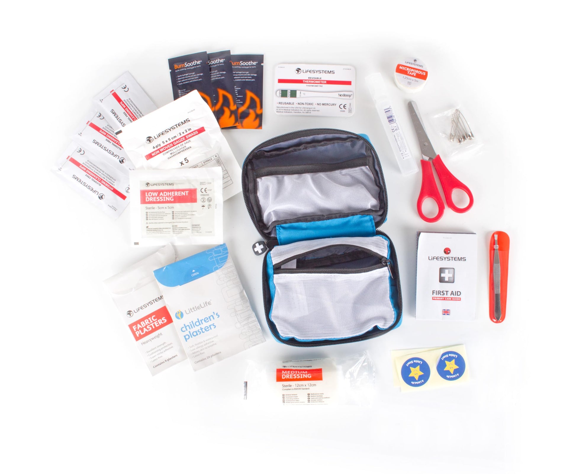 LittleLife Mini First Aid Kit with CE certified contents, perfect for treating common injuries at home and on family vacations.