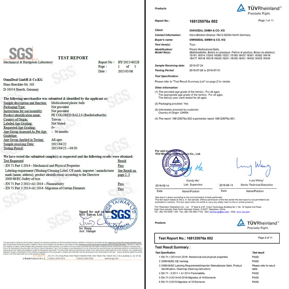 ["HIGH-QUALITY BPA-FREE PLASTIC - The certified ball pit balls are continuously tested for harmful substances. They are soft, odorless, and durable - ideal for babies and children from birth.","SAFETY FROM ZERO - The ball springs back into the original shape after being pressed, providing absolute safety for toddlers. The smooth and flexible structure of the balls prevents injuries.","PROMOTING MOTOR SKILLS - The perfect children's ball for small hands: safe to use, easy to grip and throw. Fine and gross motor skills, creativity, and balance are promoted.","VERSATILE USE - For ball pits, play tents, tunnels, and bounce houses - the guarantee of fun for birthday parties, playrooms, and gardens. Even dogs and cats enjoy playing with the balls.","5 BRIGHT COLORS - Ball set for girls & boys in Blue, Red, Yellow, Green, and Orange: The Agility play ball is great for promoting visual stimuli and developing color recognition."]