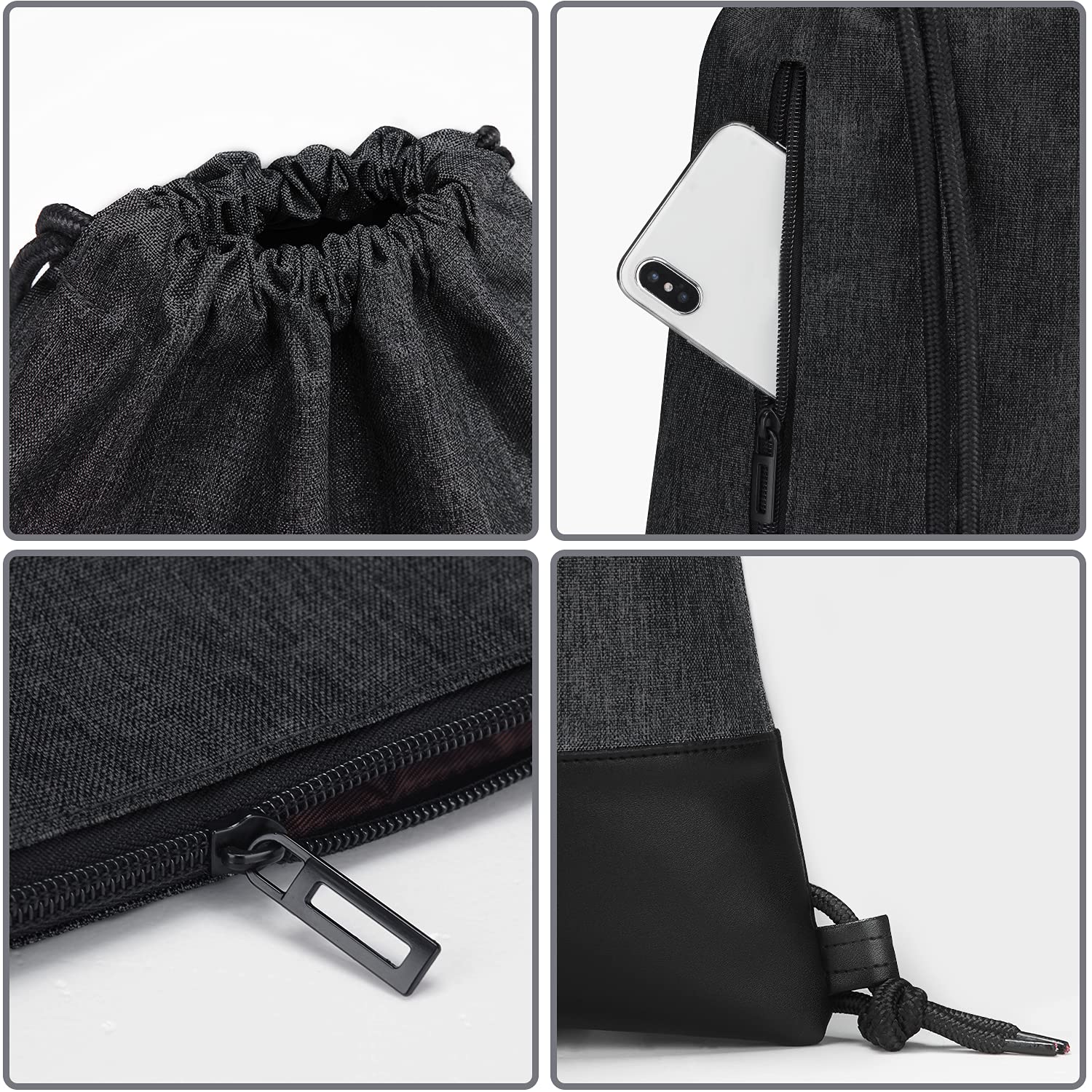 LIVACASA gym bag, made of water-resistant material with leather accents, lined with inner pocket and keychain. Perfect for men and women, this black gymsack includes an outer pocket and money pouch.