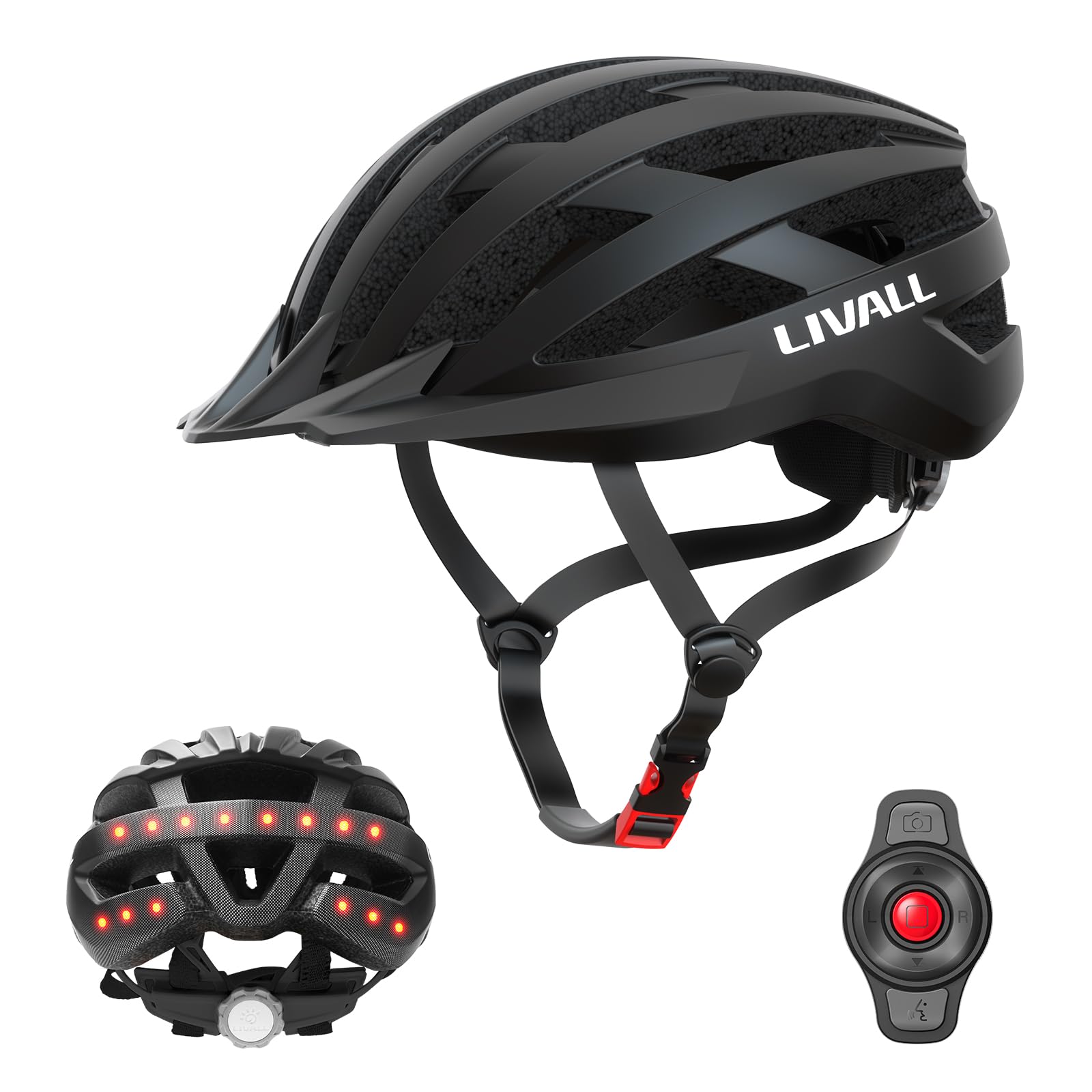 LIVALL Smart Bike Helmet with LED taillight and turn signals, Bluetooth bike helmet with wireless remote control, SOS alert and built-in microphone and speaker, for men and women, black