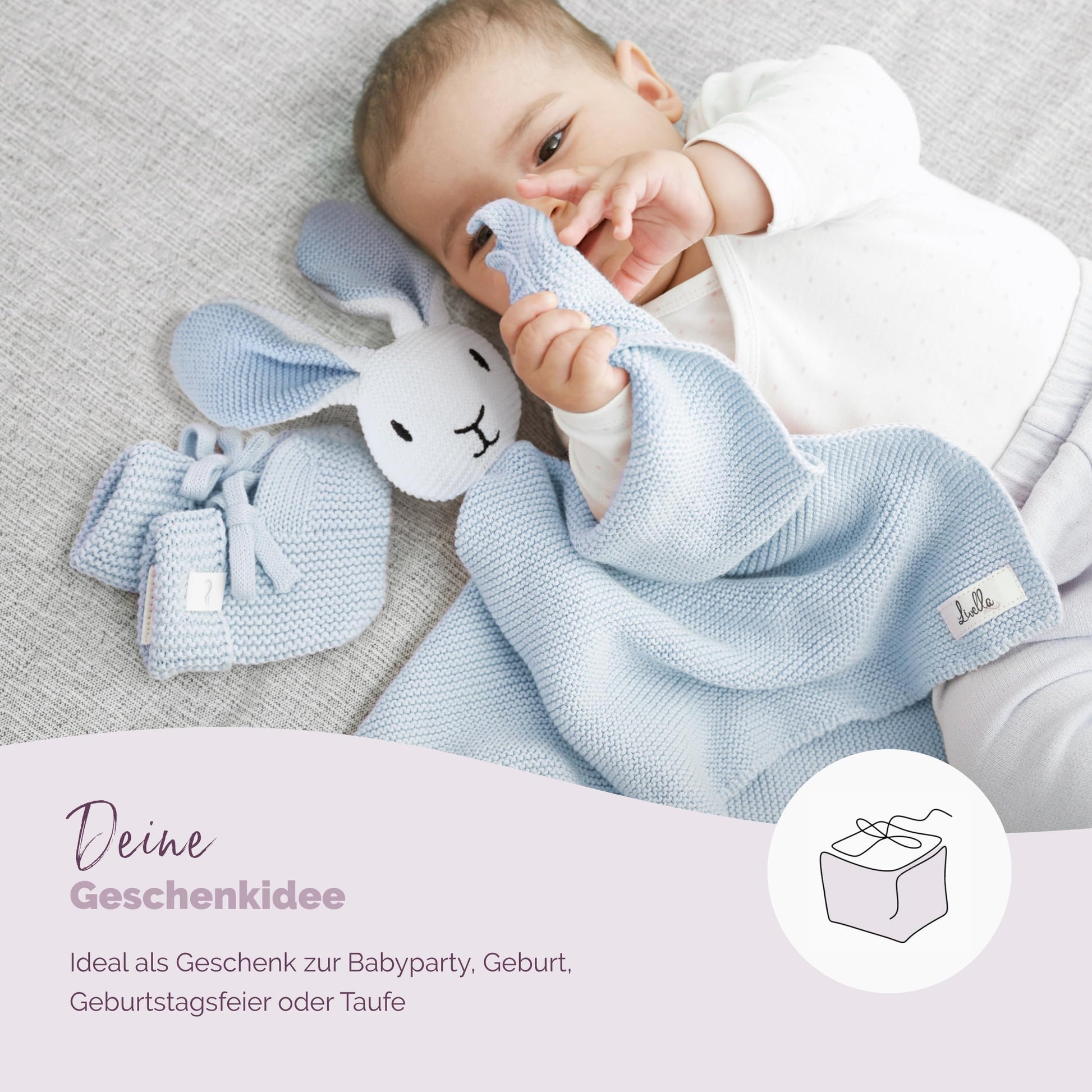 Livella Cuddle Blanket "Bunny" with socks - Pure organic cotton - Premium cuddly toy, cuddly blanket, comfort blanket, knit blanket - Velvety soft & breathable - Oeko-TEX® Standard 100 and GOTS Certified