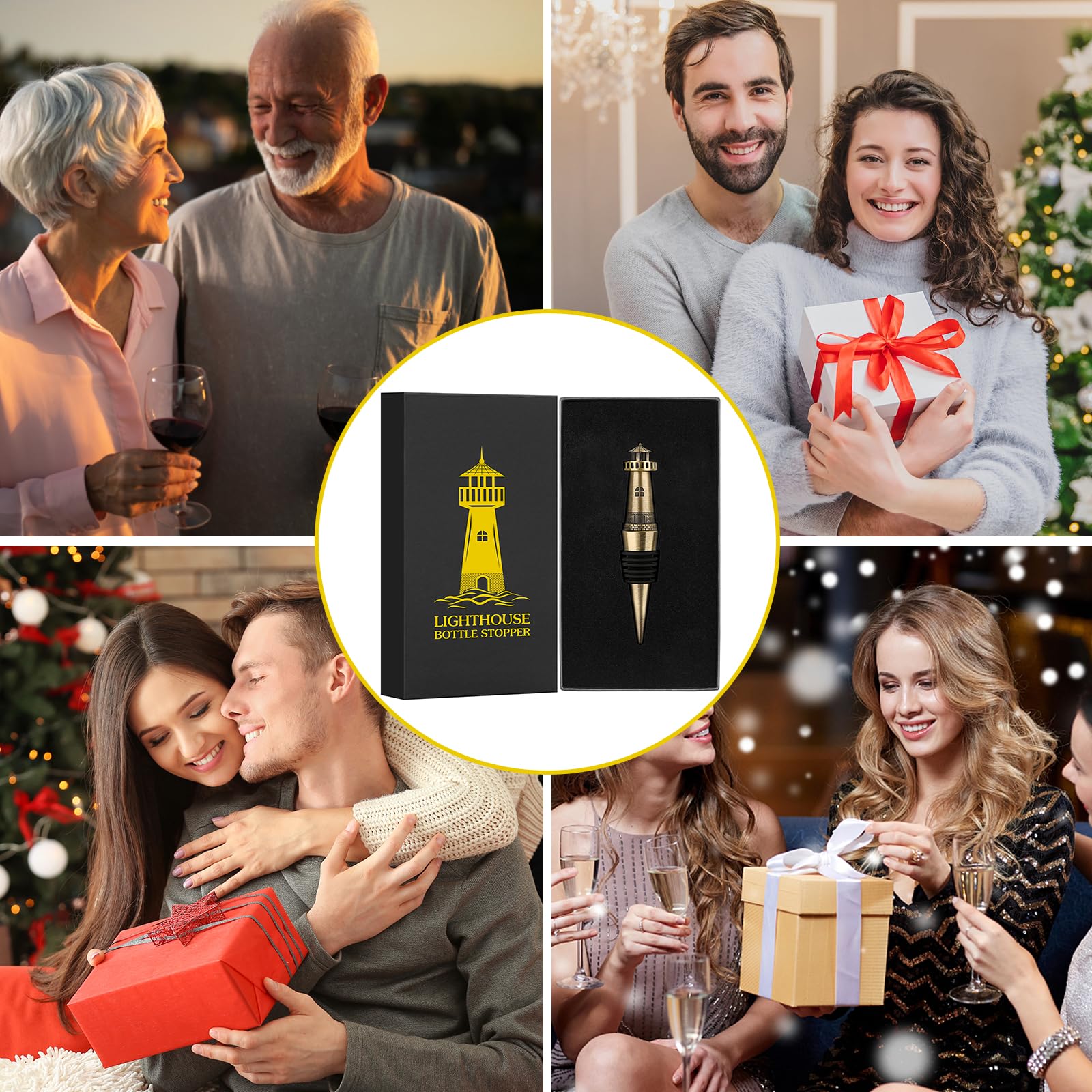 ["Unique Gift - Make a statement with this novel nautical lighthouse wine stopper. A unique souvenir or gift for any wine lover.","Keep Freshness - Airtight seal preserves opened wine freshness. Keeps oxygen out and taste intact. Universal stopper fits most wine and champagne bottles.","Ready to Gift: Comes beautifully packaged in an elegant gift box, ready to give. Perfect for wine lovers, collectors, and nautical decor fans.","Versatile Accessory - Use as a decorative accessory or functional wine saver. Presented or discreetly stored, this stopper elevates any bottle.","Coastal Charm - Lighthouse design with nautical flair brings coastal charm. Unique decorative piece inspired by iconic harbor lighthouses."]