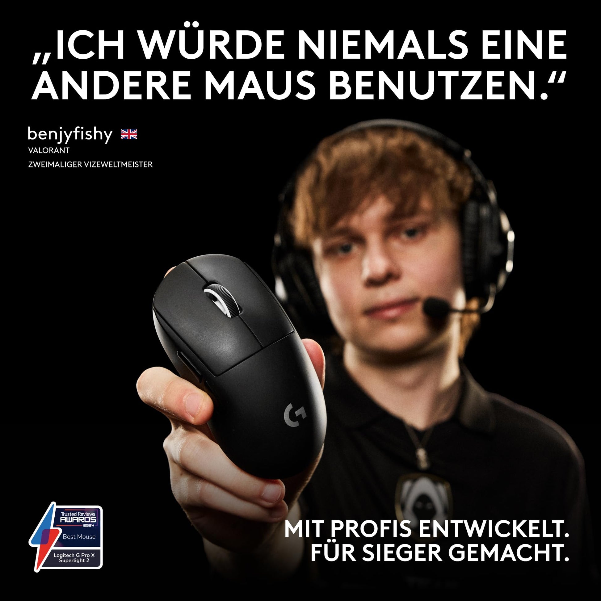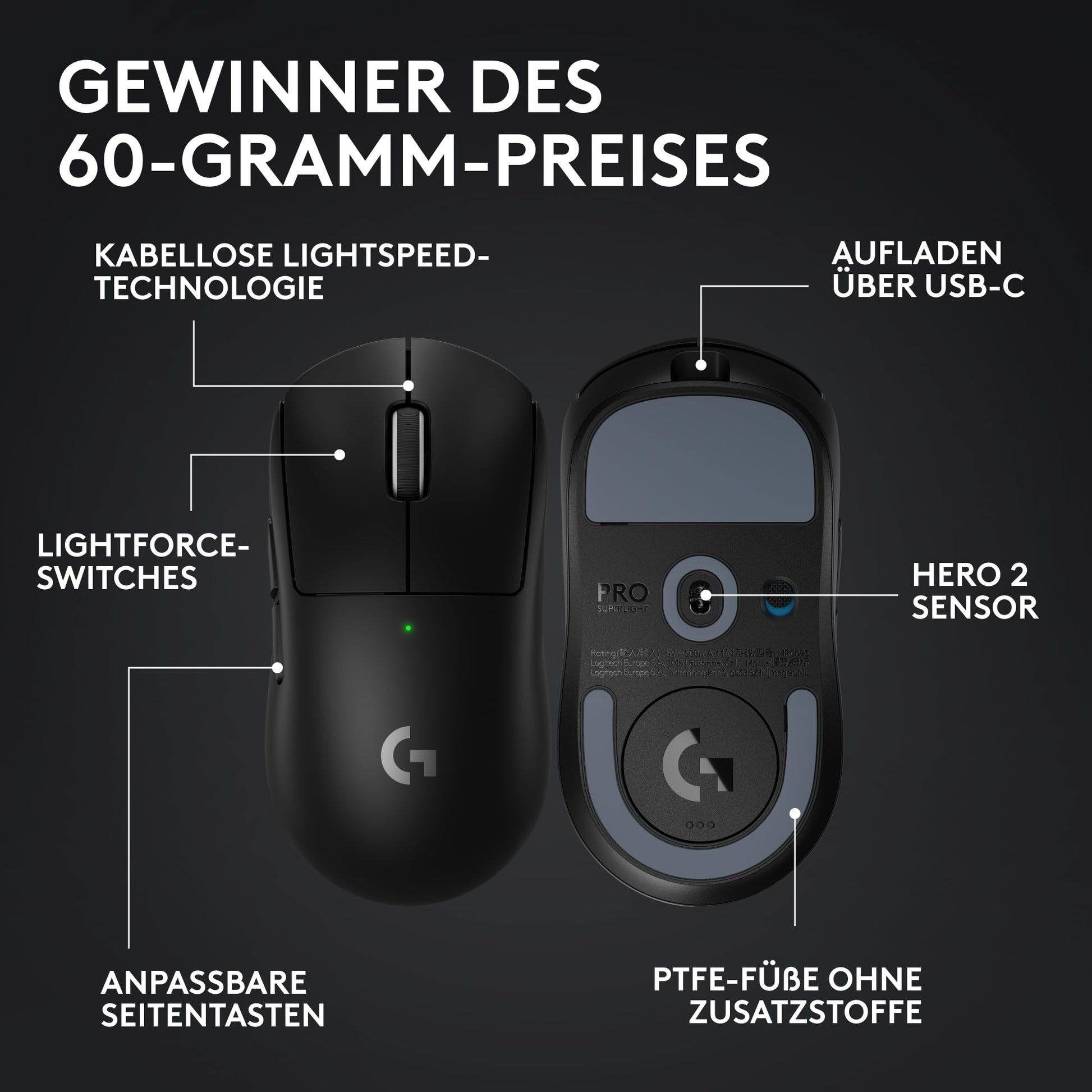 Logitech G PRO X SUPERLIGHT 2 wireless gaming mouse, Western Europe packaging, 60g pro-grade mouse with 5 programmable buttons, 44K DPI sensor, 8,000 Hz signal rate, USB-C charging for PC/Mac - Black