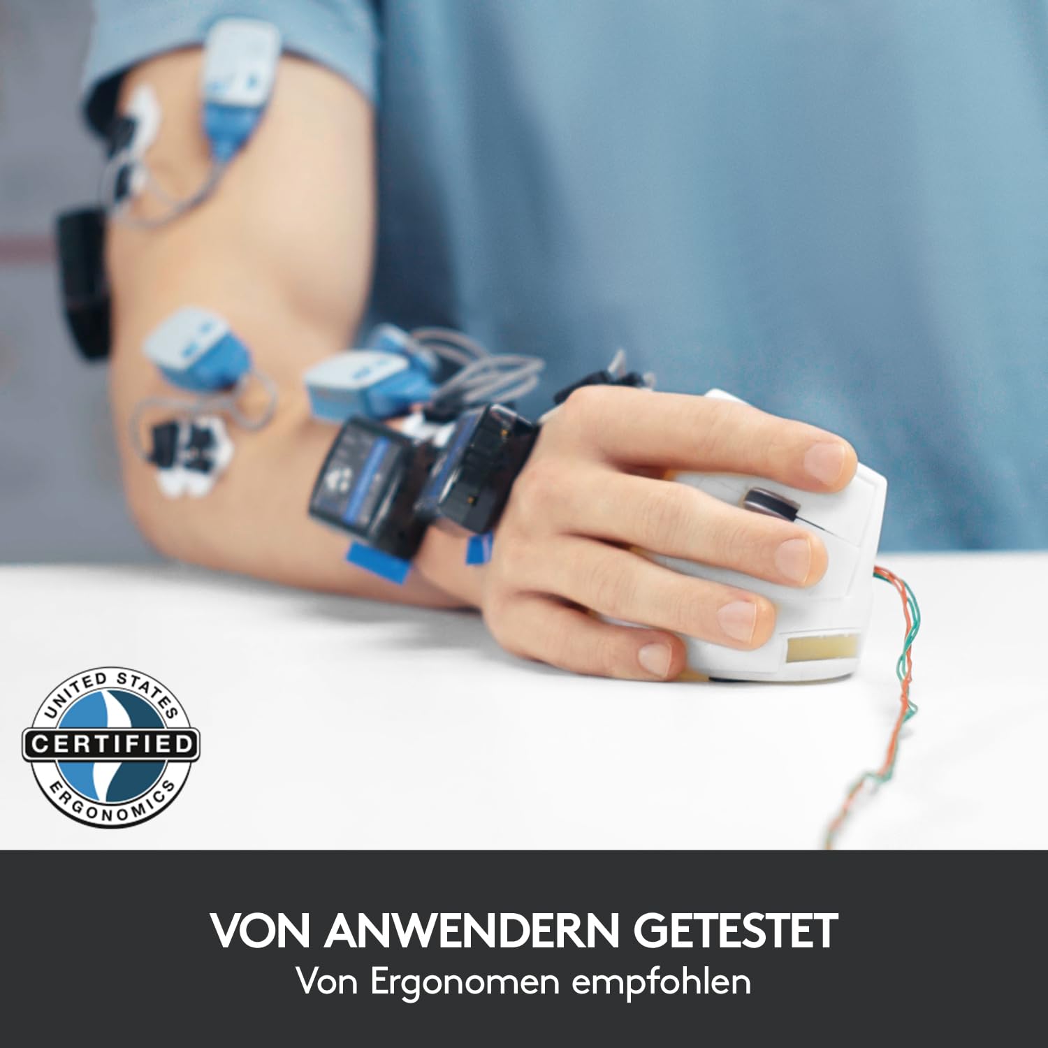 ["Natural handshake position: The natural handshake position of the wireless MX Vertical mouse reduces the required muscle activity by 10 percent compared to a traditional mouse, without sacrificing performance","Better hand posture: The unique vertical 57° angle of the ergonomic mouse reduces pressure on the wrist and allows comfortable thumb positioning on the thumb rest","Tested and recommended by users: The mouse was developed and tested according to the criteria of leading ergonomists – improving posture, reducing muscle strain, and alleviating pressure on the wrist","Advanced Optical Tracking: The 4000 DPI high precision sensor reduces required hand movement by 4 times and helps you avoid fatigue. The wireless mouse is optimized for both Mac and iPadOS, as well as Windows","The mouse allows you to connect to up to three computers, as well as switch between these devices with just one button press or by moving the cursor from one PC screen to another with Logitech FLOW. Operating temperature: 32° to 104°F.","Rechargeable battery with quick charge: The wireless MX Vertical has up to four months of power with a full charge – and a three-hour usage time results from just one minute of quick charging"]