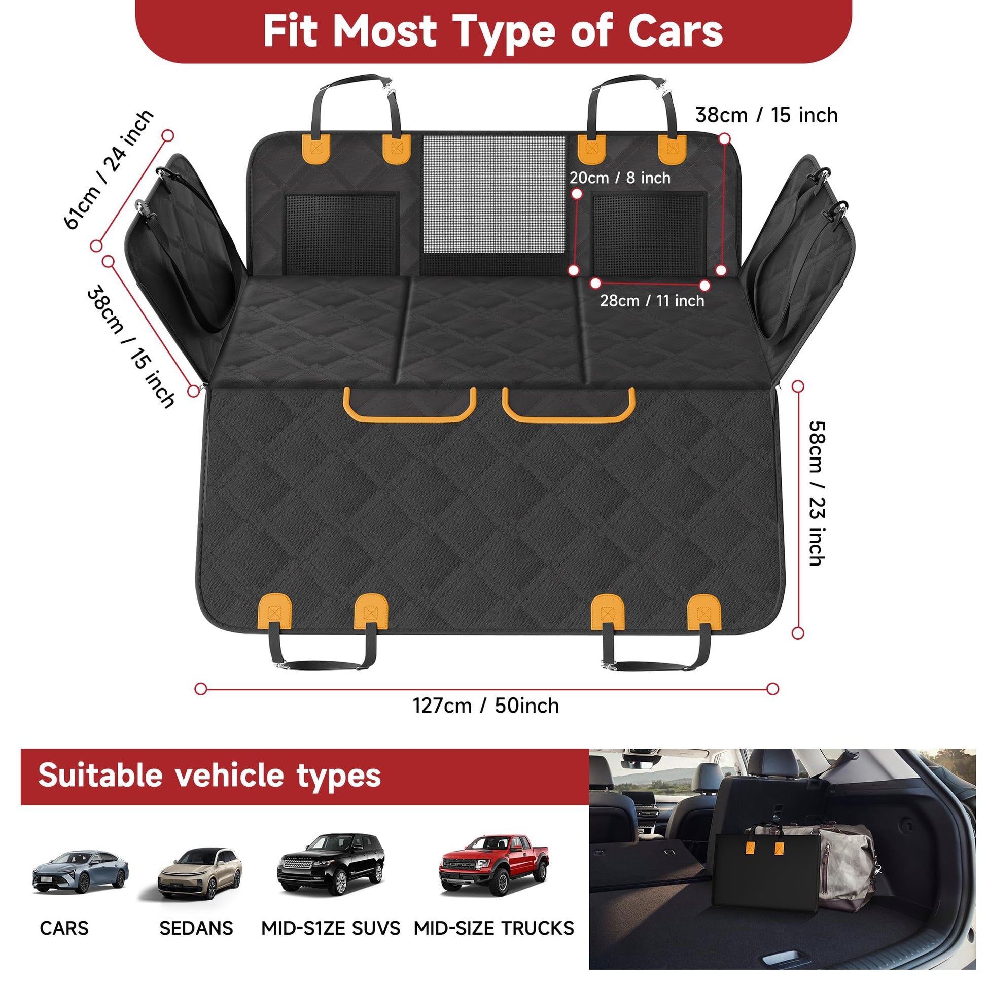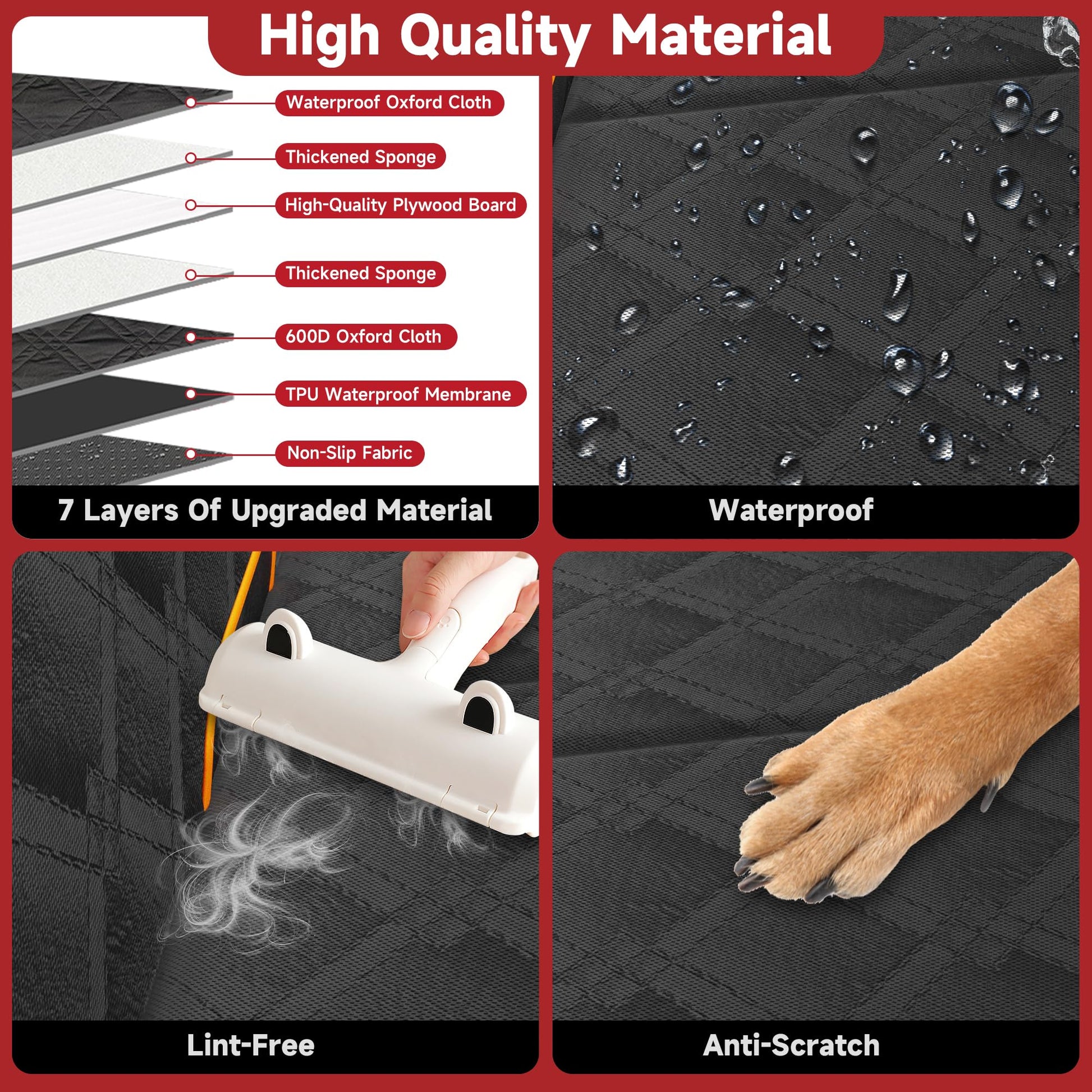 ["Prevent Your Dog's Falls"] While driving, it is easy for your dog to fall off the backseat when you brake in an emergency or when your dog is naughty and active. The car dog travel bed helps you solve this problem by preventing your dog from leaving the floor. The backseat cover provides all-around protection for the car door, is durable, and the sturdy seams prevent the dog's paws from tearing.