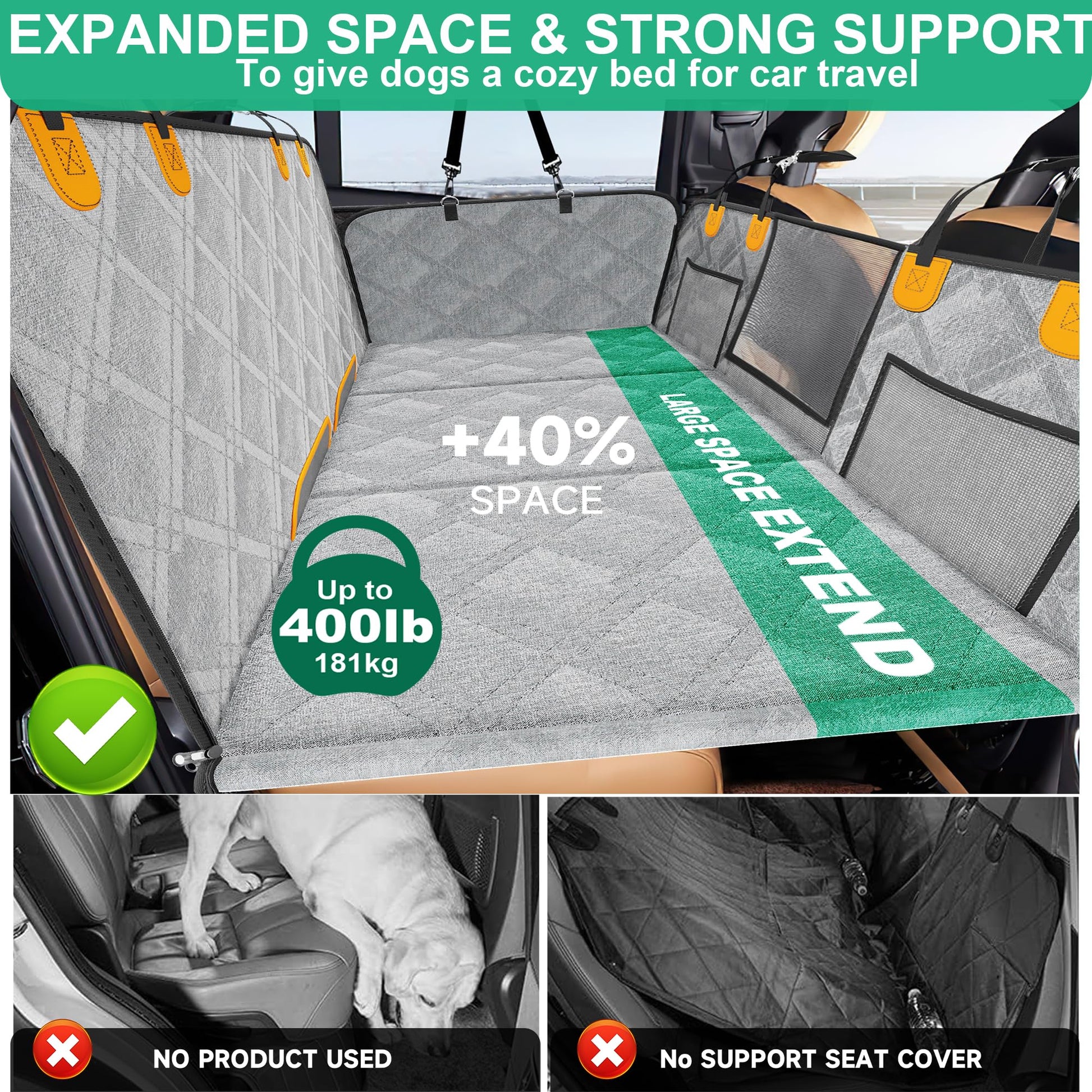 ["Extended Rear Car Seat for Dogs"] The rear seat extension for dogs transforms the entire space on the back seat into a lying area for your dog. With three built-in sturdy hollow panels, the rear seat becomes a car bed that expands the space on the back seat of your car and allows your dog to have a comfortable and enjoyable ride! Your dog will now enjoy traveling in the car! Fully protects your car seat from scratches, dirt, and pet slobber.