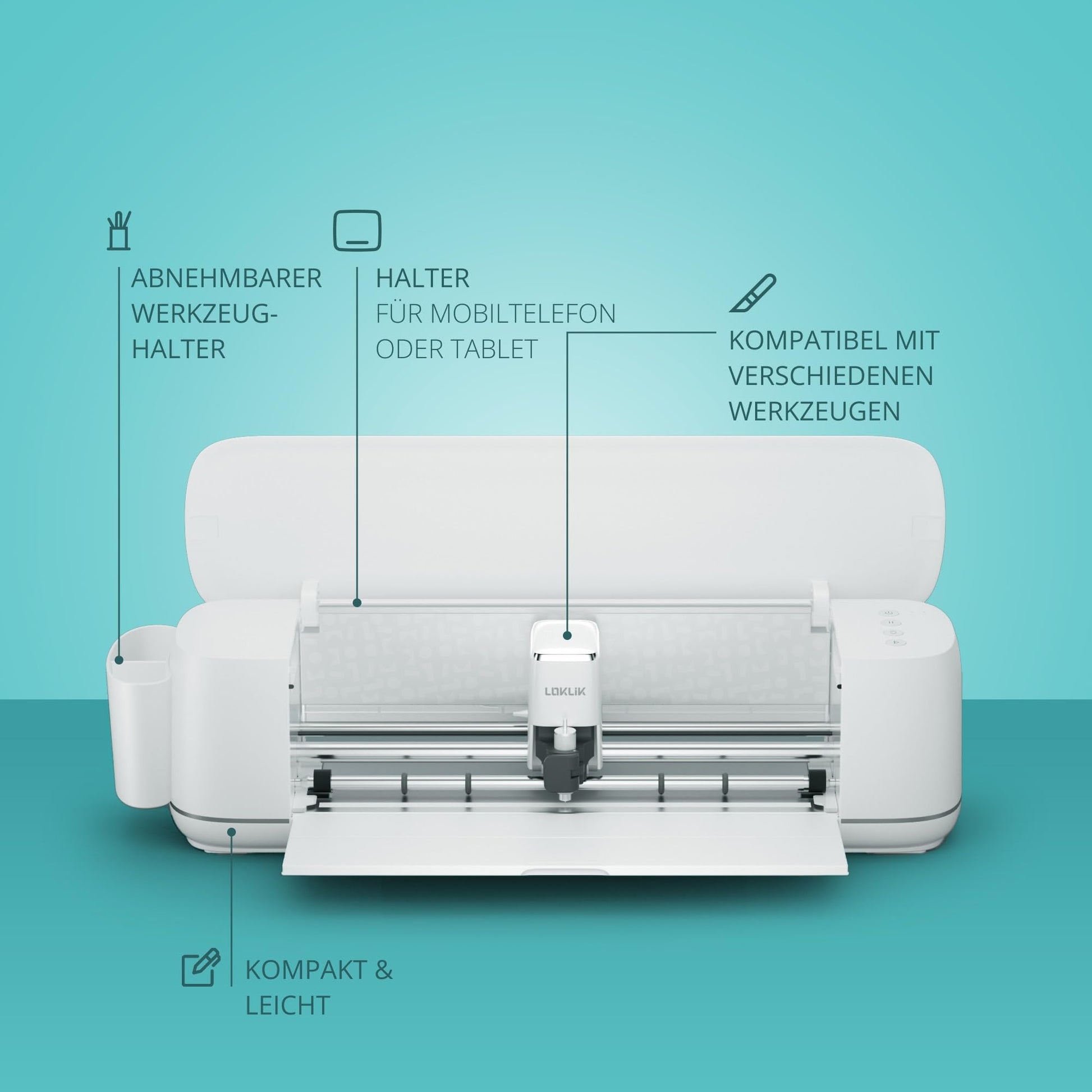 Easy handling for everyone - The LOKLiK iCraft is designed for user-friendliness and fun. So you can quickly start crafting, whether you are a beginner or experienced crafter. Thanks to the intuitive operation, you can easily cut and customize designs. You can control the iCraft with your tablet, phone, or computer.