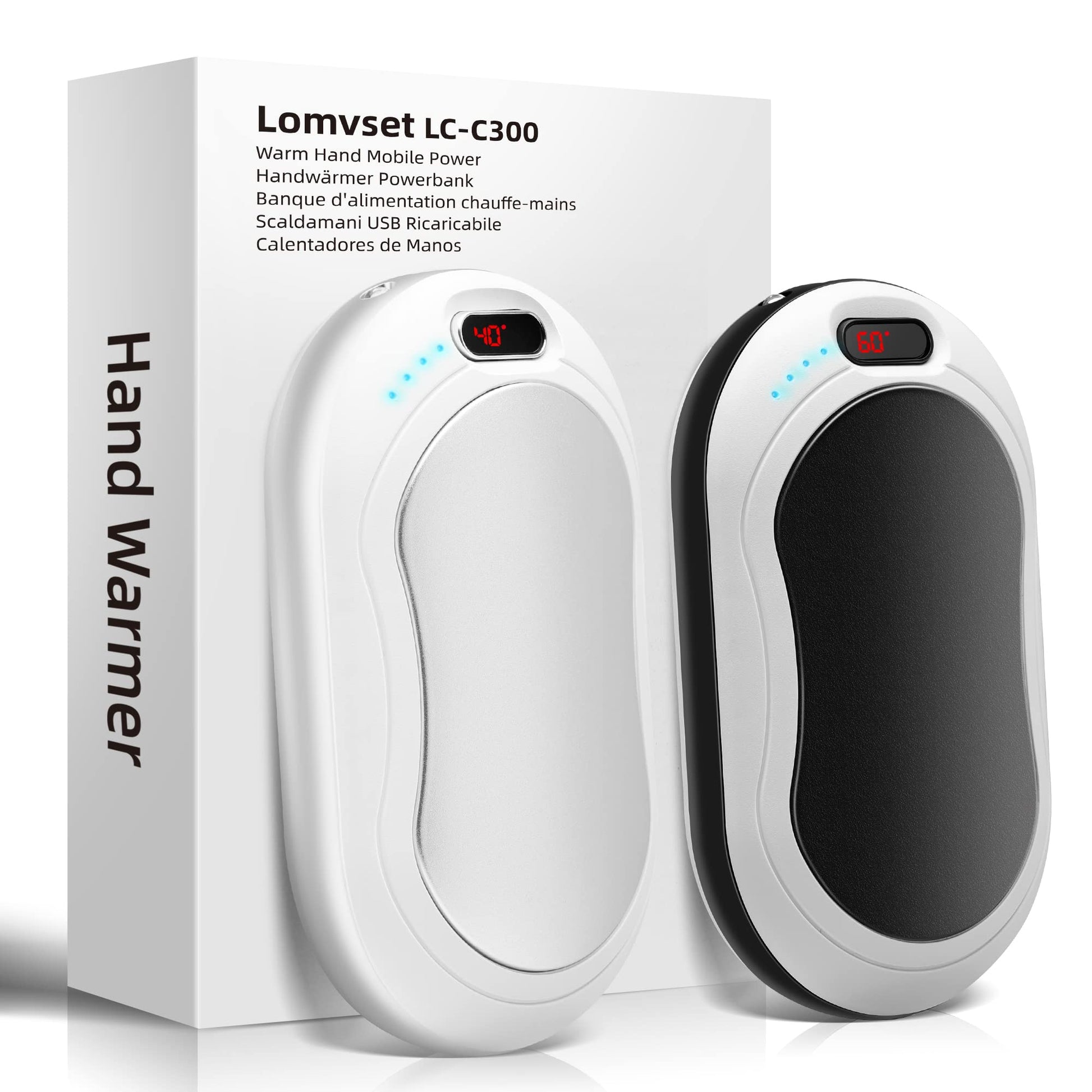 Lomvset Electric Hand Warmer 2 Pack 10000 mAh, Hand Warmer Pocket Warmer Reusable Gadget with Digital Display, Hand Warmer USB Power Bank Winter Gift for Women Kids (Black & Silver)