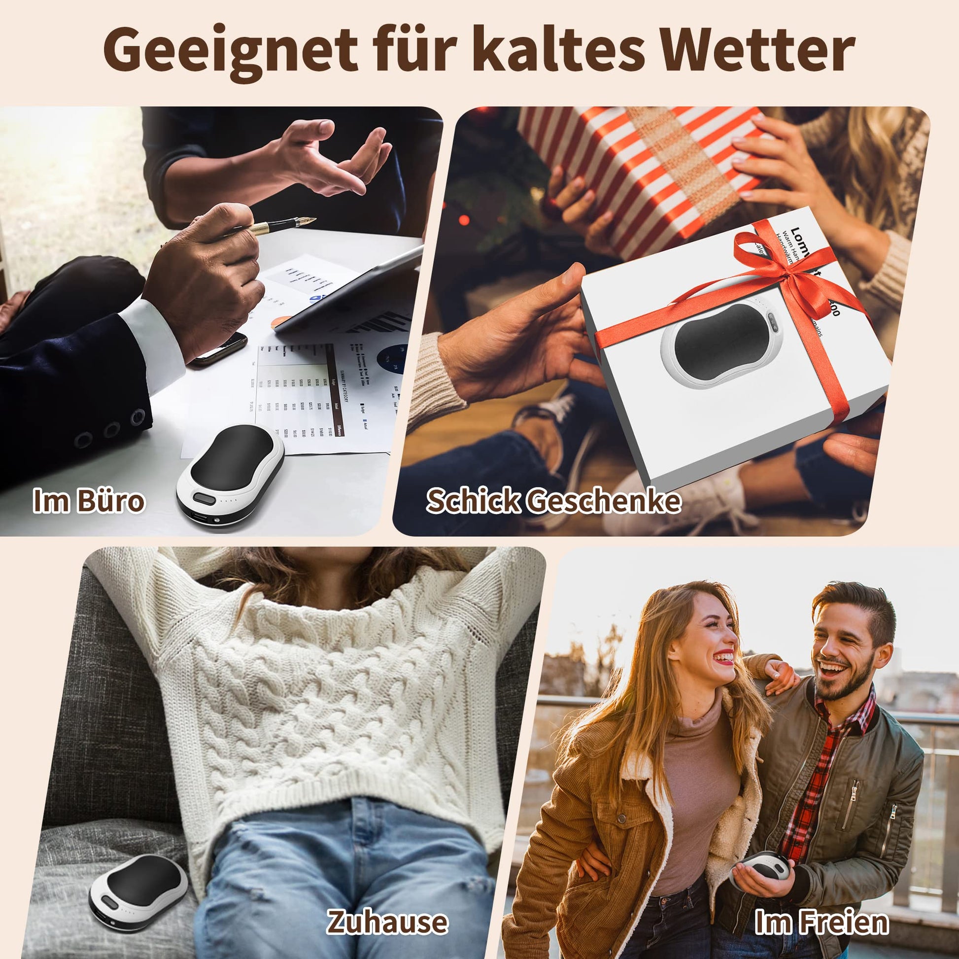 "【Multifunctional Hand Warmer】 Our reusable hand warmer features multifunctional functions such as keeping warm, power bank, LED flashlight, vibrating massage, heat palace, etc., which can help reduce fatigue and relieve pain, and provide warmth in the cold winter.",