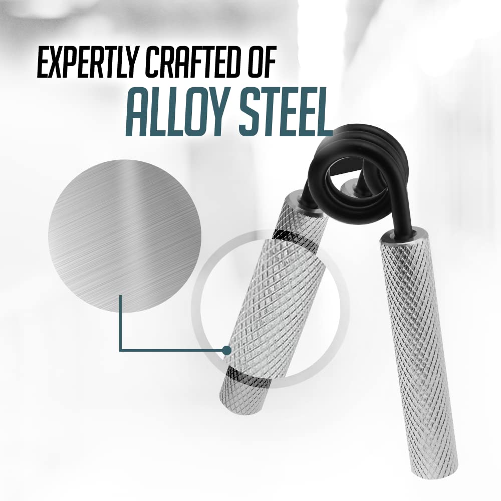 "Durable construction: Expertly crafted from alloyed steel construction, grip strength trainer, this finger grip set will serve you well throughout the year. The aluminum handles are sturdy yet lightweight, gentle on your hands, and still provide great training.
