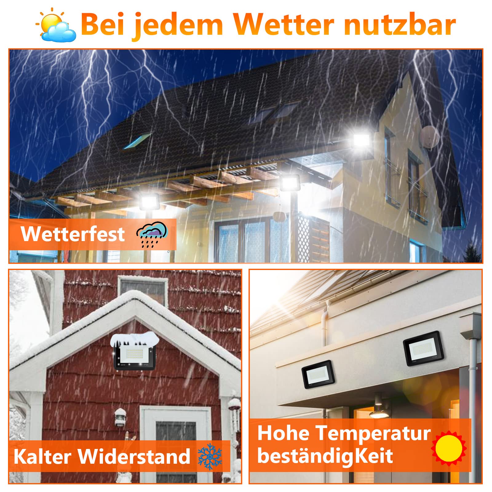 ["đĄăSuper bright energy savingăWith highly efficient SMD2835 lamp beads, large-area illumination, reducing light reflection and refraction. The improved hardened glass undergoes an electrostatic adsorption treatment that does not damage the glasses.","âăWaterproof designăIP66 protection level, can be used indoors and outdoors. It can also function normally in bad weather.","đĄăEfficient heat dissipationăThickened aluminum die-cast shell is used to ensure effective heat dissipation of the lamp body and extend the lamp's life span.","đăWide beam angleăThe beam angle of this LED outdoor floodlight is 120°, providing a wide range of lighting without shadows and glare.","đ§ăFlexible installationăThe heat sink can be adjusted by 180°. It adopts a thickened and widened metal bracket with 2 pre-drilled holes, which can be installed at different angles on the ceiling or wall. (Without plug)","đ If you have any questions, feel free to contact us anytime, we are happy to assist you!"]