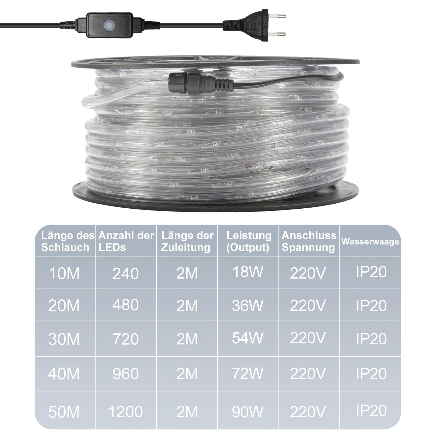 ["【480 LED Light Hose】72ft Warm White LED Light Hose (20m hose + 2m lead), with plug and black controller. Hose diameter 10mm.