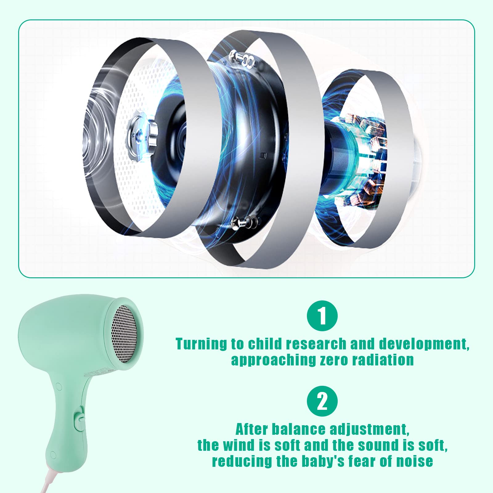 ["đ§ăChildren's Hair Dryeră Small children's hair dryer handy for your kids' small hands. Easy for kids to use. Little girls can hold the children's hair dryer long enough to dry long hair or waist-length hair. Provides effective airflow for quick and easy drying.","đ§ăSafety MaterialăAnti-scalding design with children-grade ABS material. Hydrates hair with more shine and ensures even heat distribution. Children's hair dryer with skin mode at a temperature lower than 37â is suitable for dry baby skin, preventing rashes.","đ§ăSafety ProtectionăSmall hair dryer for kids and girls designed with child lock and automatic shutdown protection in case of overheating. Small-sized children's hair dryer at 550 watts provides gentle warmth. The hair dryer is designed to be low in radiation, making it safer for use by babies, children, pregnant women, and other sensitive groups.","đ§ăConvenient StorageăThe small style has a modern design perfect for modern on-the-go lifestyle. This hair dryer saves storage space, fitting perfectly in a suitcase or bag with minimal space. It is the best choice for travel.","đ§ăGreat GiftăMom no longer has to dry kids' hair. The gentle warmth features of the children's hair dryer make it a perfect gift for mommy's baby shower, providing better care for infants and newborn babies."]