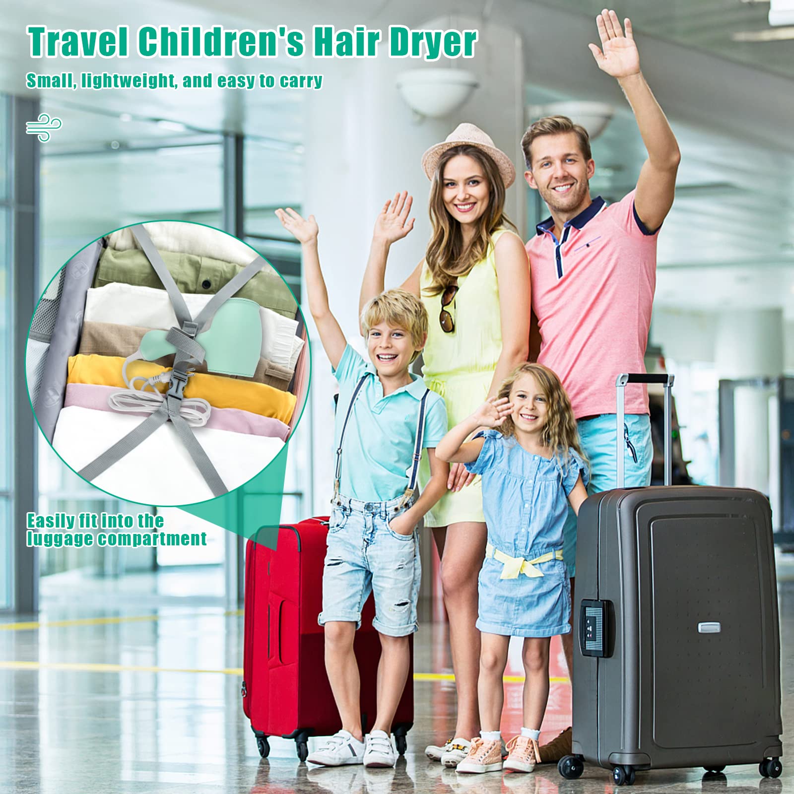 Lotvic Children's Hair Dryer, 550W Mini Hairdryer for Girls, Kids Hair Dryer with 3 Temperatures, Travel Hairdryer for Kids, Cute Mini Hair Dryer, Lightweight and Durable, Soft Touch Casing (Green)