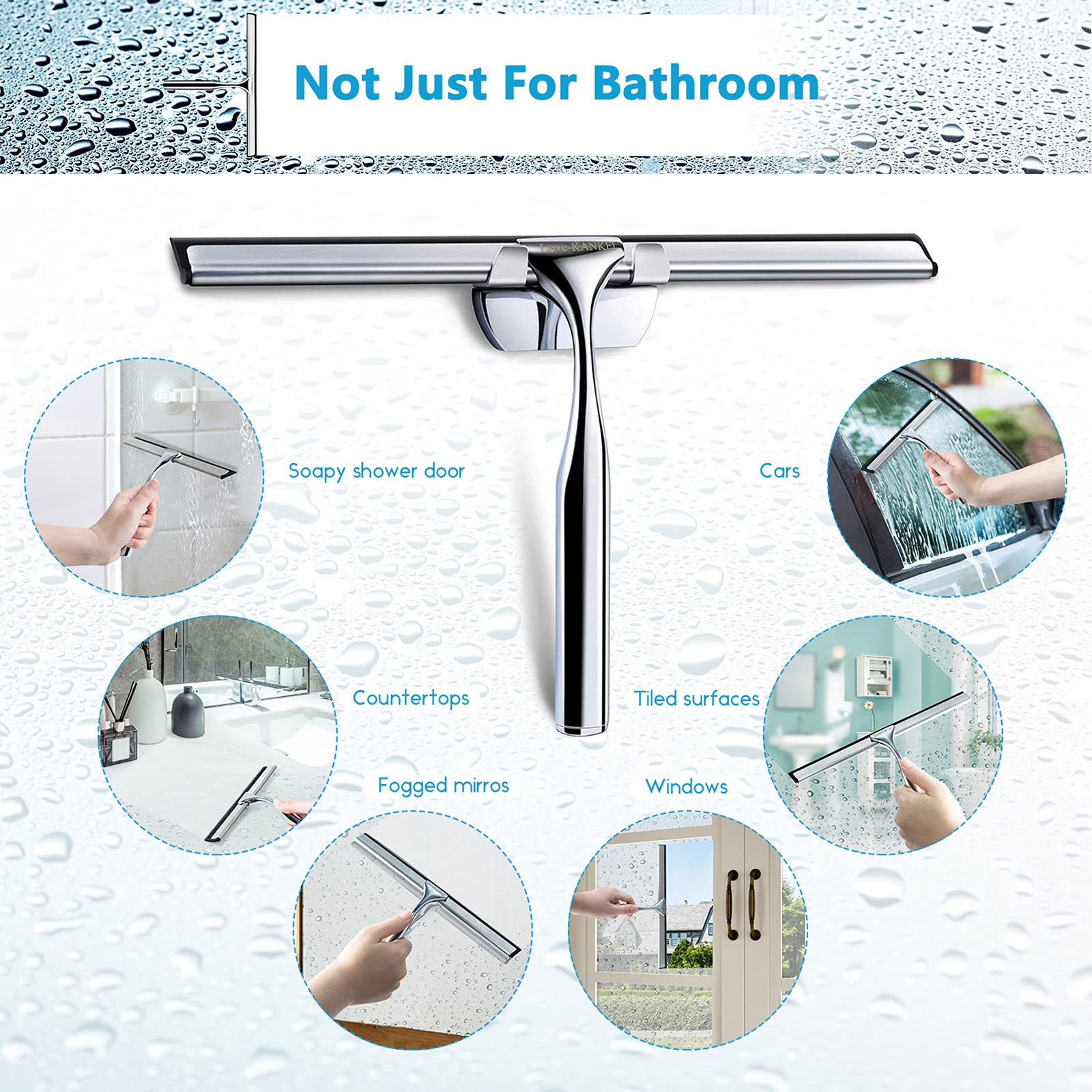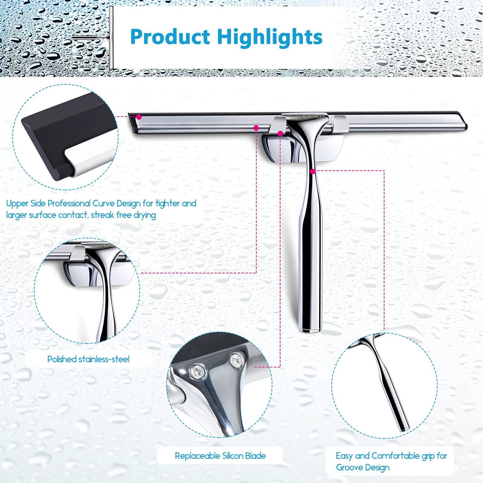 "Rustproof Stainless Steel Handle: Stainless steel squeegees are a great help for hygiene and cleanliness in the bathroom. With a modern and elegant look, the ergonomic handle makes handling more pleasant and easier.",