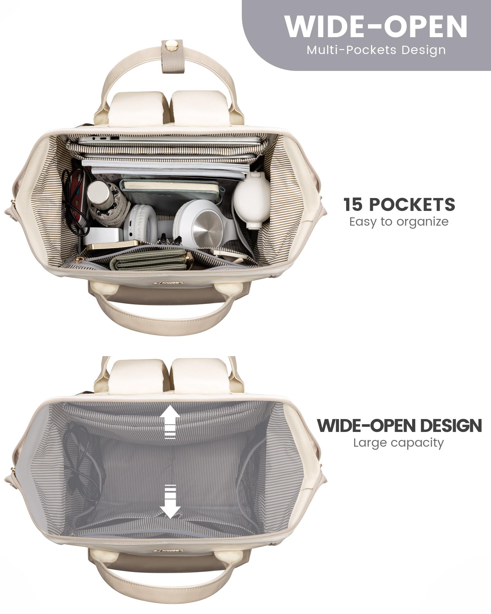 LOVEVOOK Backpack for Women, 17 Inch Laptop Work Bag Travel Backpack School Bag Large, Waterproof Daypacks Teacher Bag Backpack Women Elegant for Work Travel School College Office, Beige