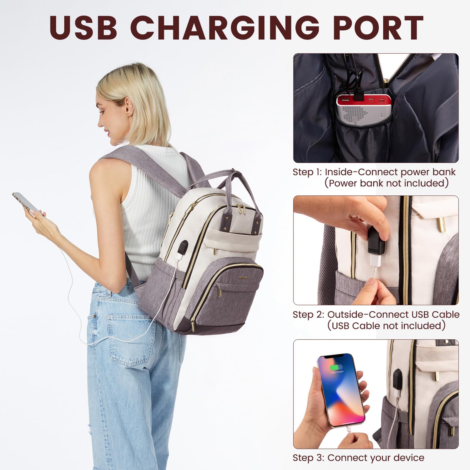 ["Theft-proof Backpack With a theft-proof zipper on the top of the main compartment, you can protect the items in the bag from thieves.","Large Capacity + Multiple Compartments This large women's backpack can accommodate laptops up to 15.6 and 17 inches with padded protection. Not only does it have many compartments, but also a reasonable distribution, with enough space to cover your daily needs.","Size + Waterproof Material 15.6 inch: 7.5*12*16 inches / 19*30.5*40.6 cm; Capacity: 23 liters; 17 inch: 7.8*13*19 inches / 19.8*33*48.3 cm; Capacity: 31 liters; Scratch and water-resistant nylon material protects your belongings from light rain.","Versatile Occasions + Uses Padded shoulder straps and luggage straps on the back make traveling easier. It is very suitable for school backpack, travel backpack, work backpack, casual backpack, and is the perfect gift for friends and relatives.","Note: During the product update process, the old version is a version with a password lock and the new version is a version with an updated zipper lock. The old and new versions are randomly shipped."]