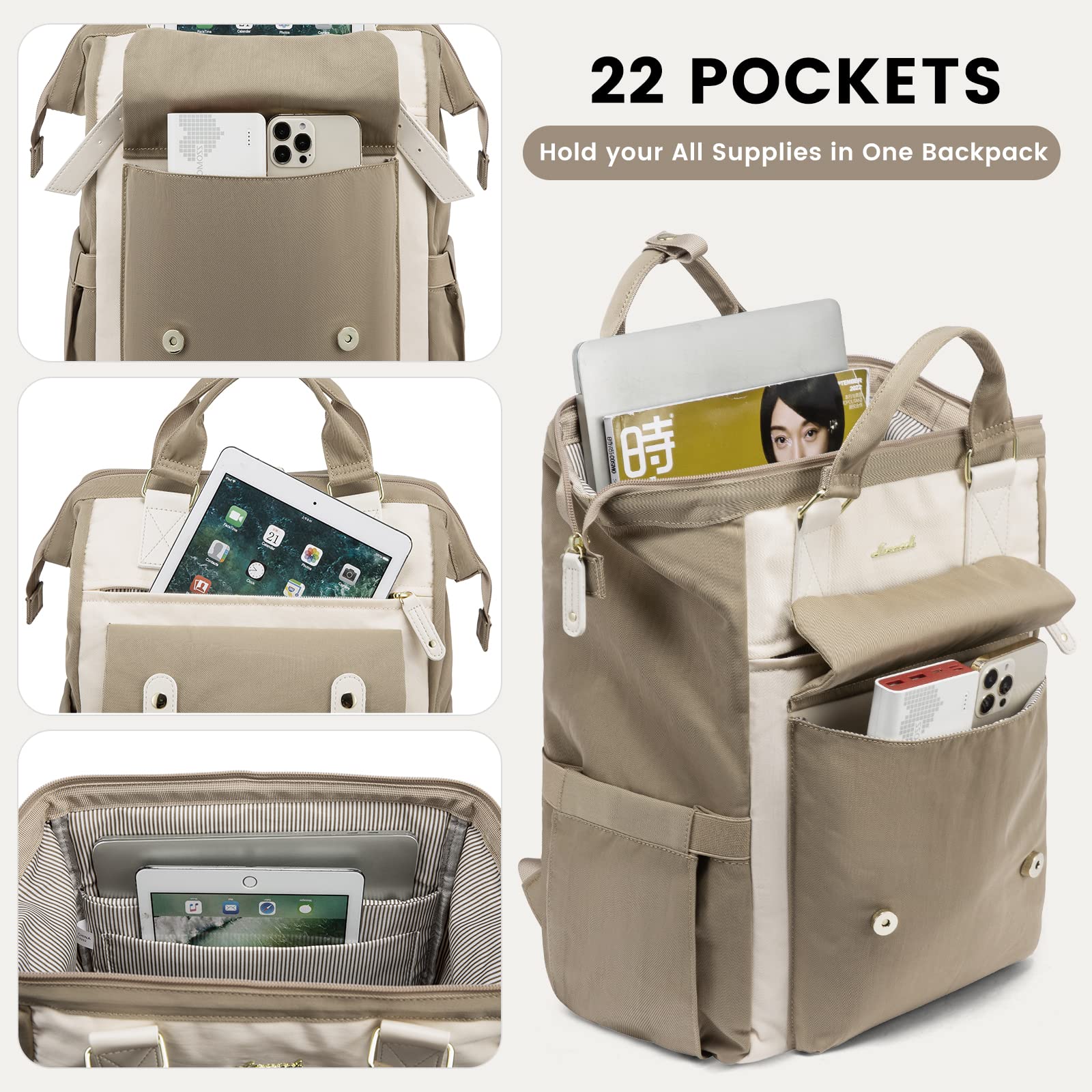 LOVEVOOK backpack for women, large laptop school backpack for girls teenagers 17 inches with data cable bag, waterproof travel backpack school bag backpack elegant for university work business travel beige