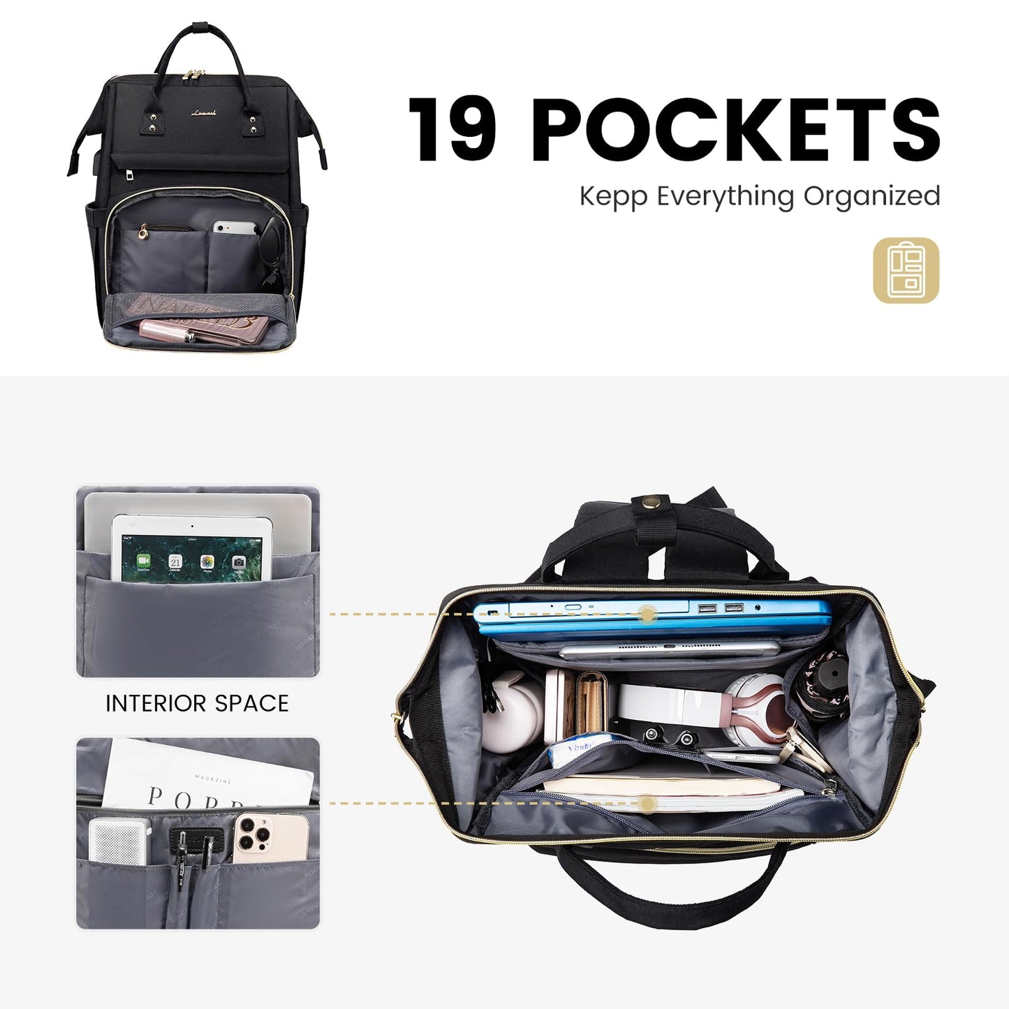 ["π LARGE BACKPACK: With dimensions of 17"x12.5"x7.8"/44x32x20cm, this women's backpack meets the carry-on requirements of all airlines. It provides plenty of space for A4 files, umbrellas, water bottles, and books, helping you organize everything you need neatly.","π§ WATERPROOF MATERIAL: The laptop backpack is made of water-resistant fabric (not suitable for heavy rain), and it is also very durable and abrasion-resistant.","π» LAPTOP COMPARTMENT: A specially padded laptop compartment protects laptops up to 17 inches. Ideal for business meetings or lectures, your electronics are always kept safe.","π IDEAL GIFT: Stylish and practical, this women's backpack is an ideal gift for your daughter, wife, or girlfriend. It is an excellent companion for everyday life, campus life, or travel."]
