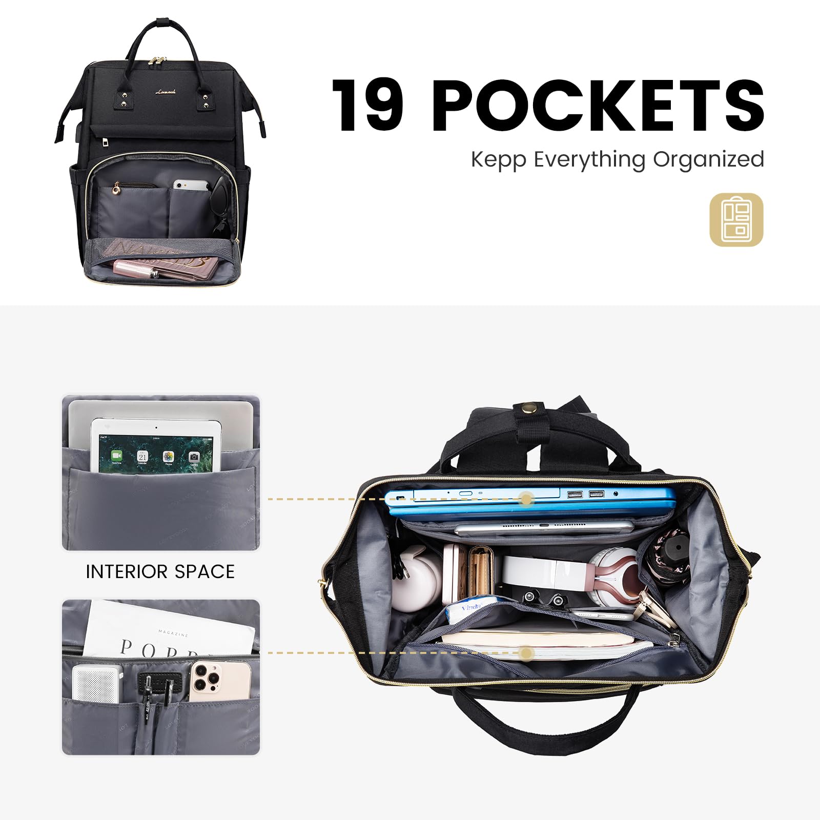 LOVEVOOK backpack for women, waterproof 17 inch laptop backpack, large school bag, backpack for women, school backpack for teenagers, girls' daypack for school, work, and travel in black.