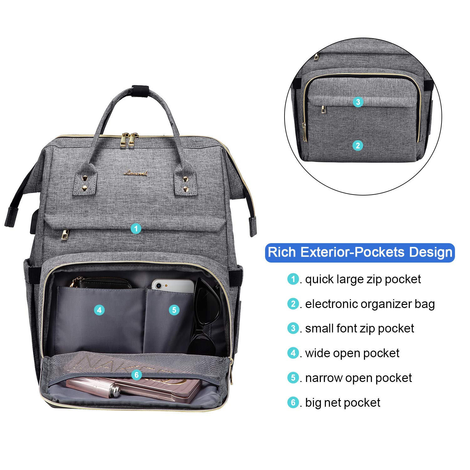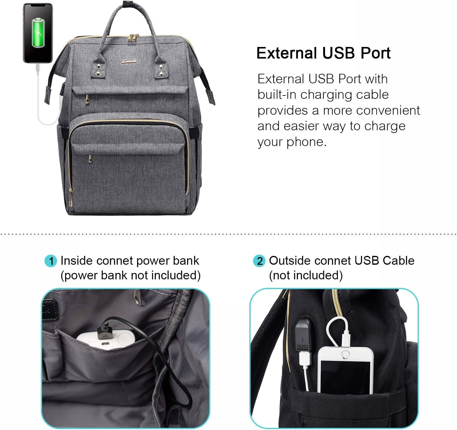 ["π MULTIPLE POCKETS: 17\"x12.5\"x7.8\"/44x32x20cm, this laptop backpack has a large capacity with many compartments, detailed information can be seen in the picture, it is suitable for school, university, travel, work, and so on.","π§³ WITH USB CHARGING PORT: This university backpack has a USB port, so you can put a power bank in the backpack and use your phone while charging.","π WITH 17 INCH LAPTOP COMPARTMENT: In this women's school backpack, there is a padded sleeve for a 17-inch laptop (largest laptop size: 39x29cm) to better protect your laptop.","π§³ WATERPROOF: This business backpack is made of high-quality canvas, it is scratch-resistant, durable, and waterproof, so things in the bag will not get wet in the rain."]