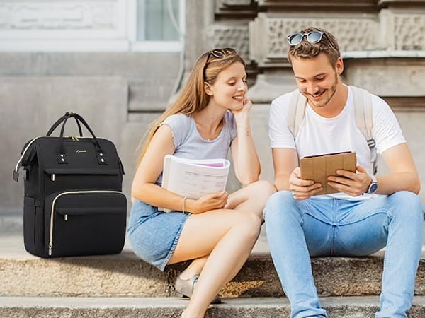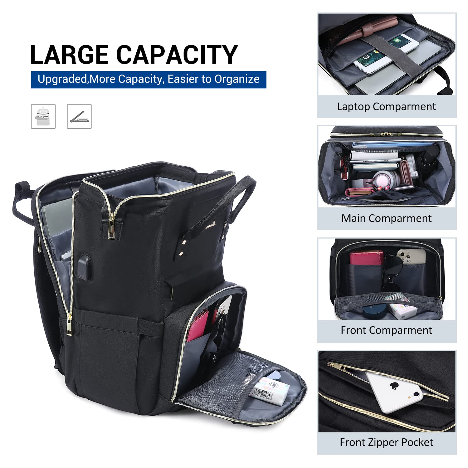 LOVEVOOK Women's Backpack, Waterproof Laptop Backpack 17 Inch with Separate Laptop Compartment, Large School Backpack School Bag, for Work University Teacher Business Office, Black