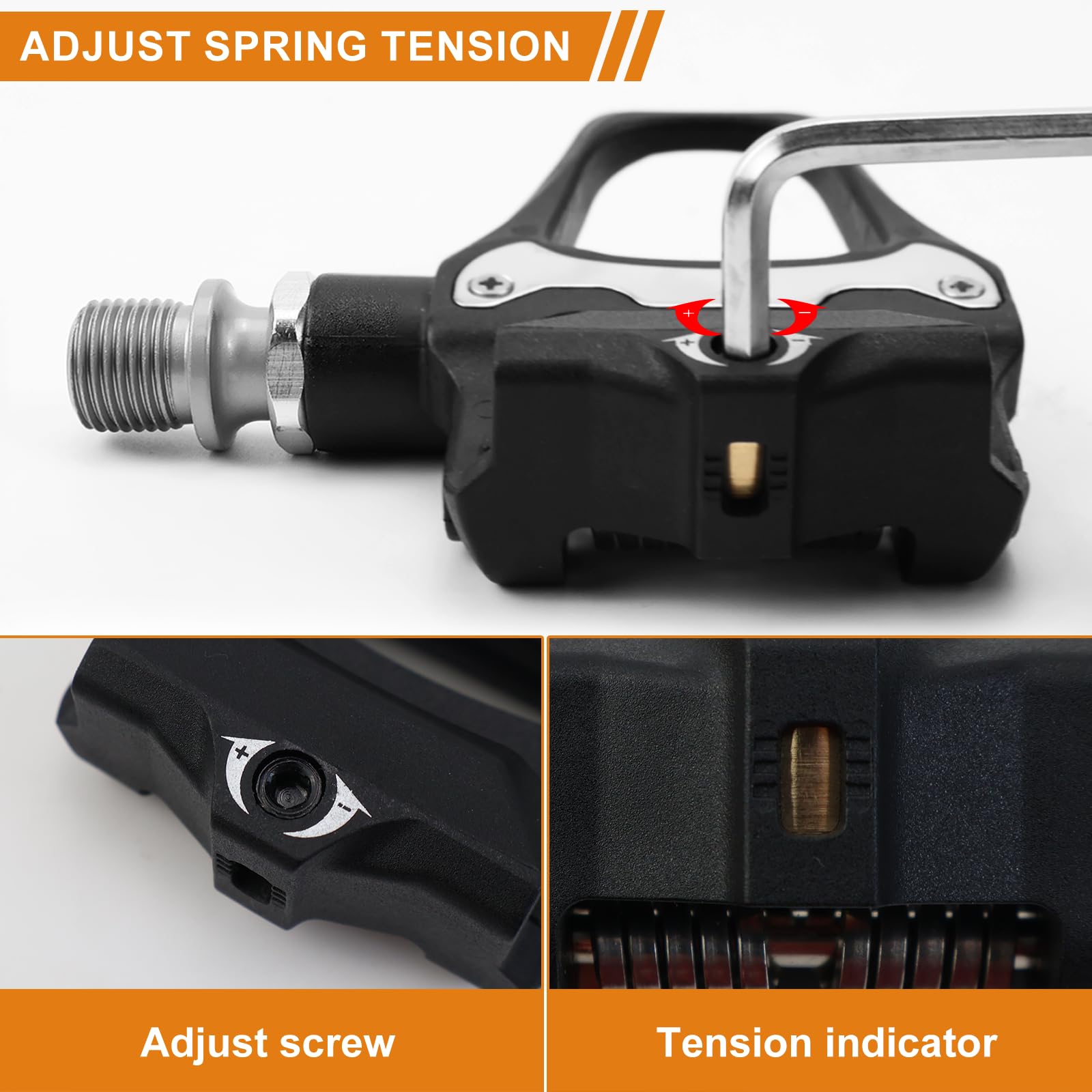 "DURABILITY: Mtb road bike pedals bicycle spd sl Surface is made of high-quality nylon material, scratch-resistant, lightweight, shape-resistant, and resistant to tears. Combined with high-strength chromoly steel sealed bearings, it is sturdy, durable, corrosion and rust-resistant, and can withstand repeated shocks, ensuring a long lifespan","NON-SLIP: Mtb spd clipless pedals road bike gravel offer a self-locking slip design that allows for a precise fit with the shoe plates and provides better traction to prevent sole slippage, ensuring safety while riding","COMPATIBILITY: COMPATIBLE WITH shimano clipless spd pedals road bike mtb is compatible with most 9/16-inch axle bicycles, including mountain bikes, road bikes, and others. Pedals come with mounting materials and instructions for easy installation without additional purchases","EFFICIENCY: Clipless pedals spd mtb pedals reduce energy loss by securing foot position and providing stable support with a wide platform, enhancing performance while riding","ADJUSTABILITY: COMPATIBLE WITH mtb spd pedals bicycle clipless pedals shimano allows for adjusting the locking and release force according to personal riding habits and preferences to achieve a perfect balance between safety and user-friendliness"