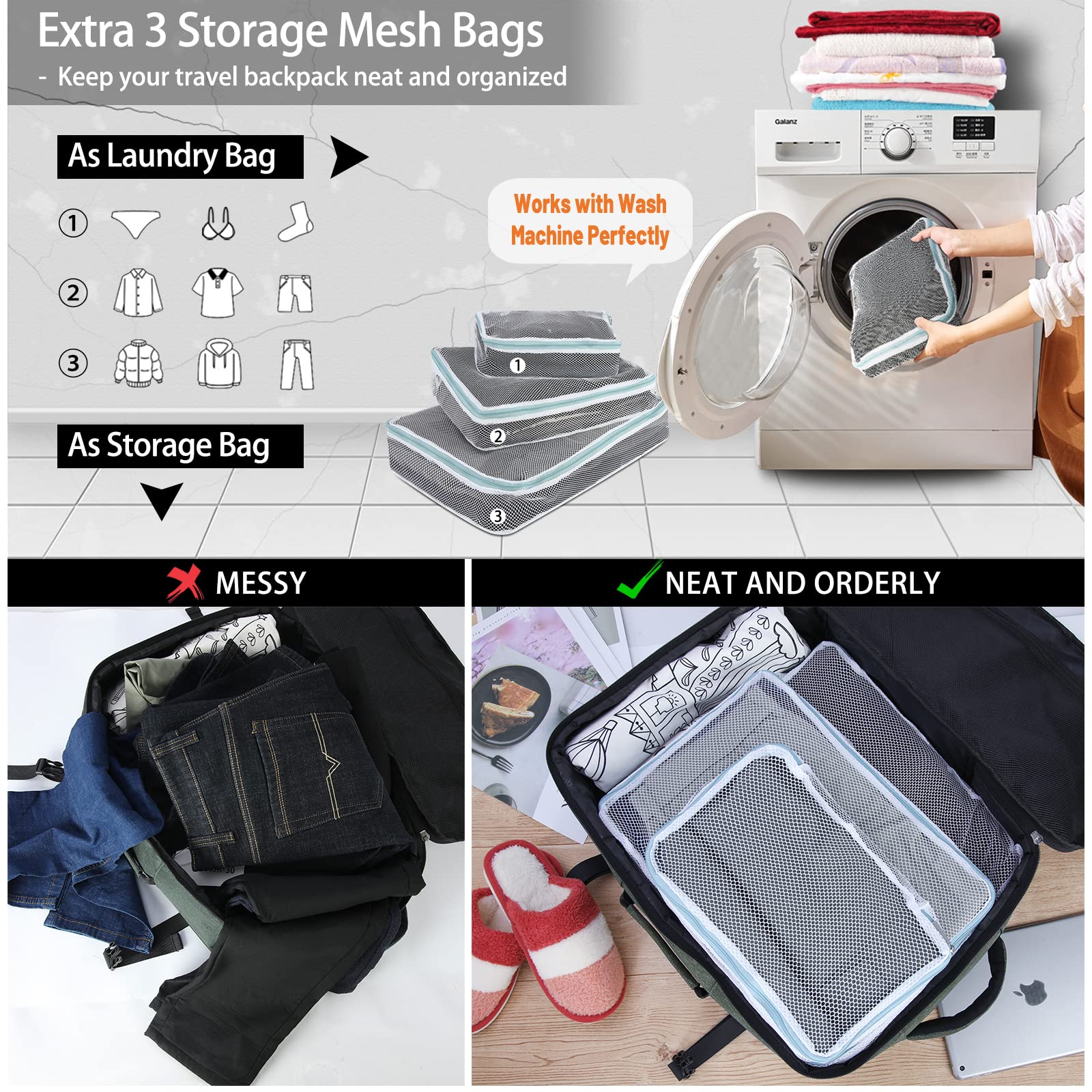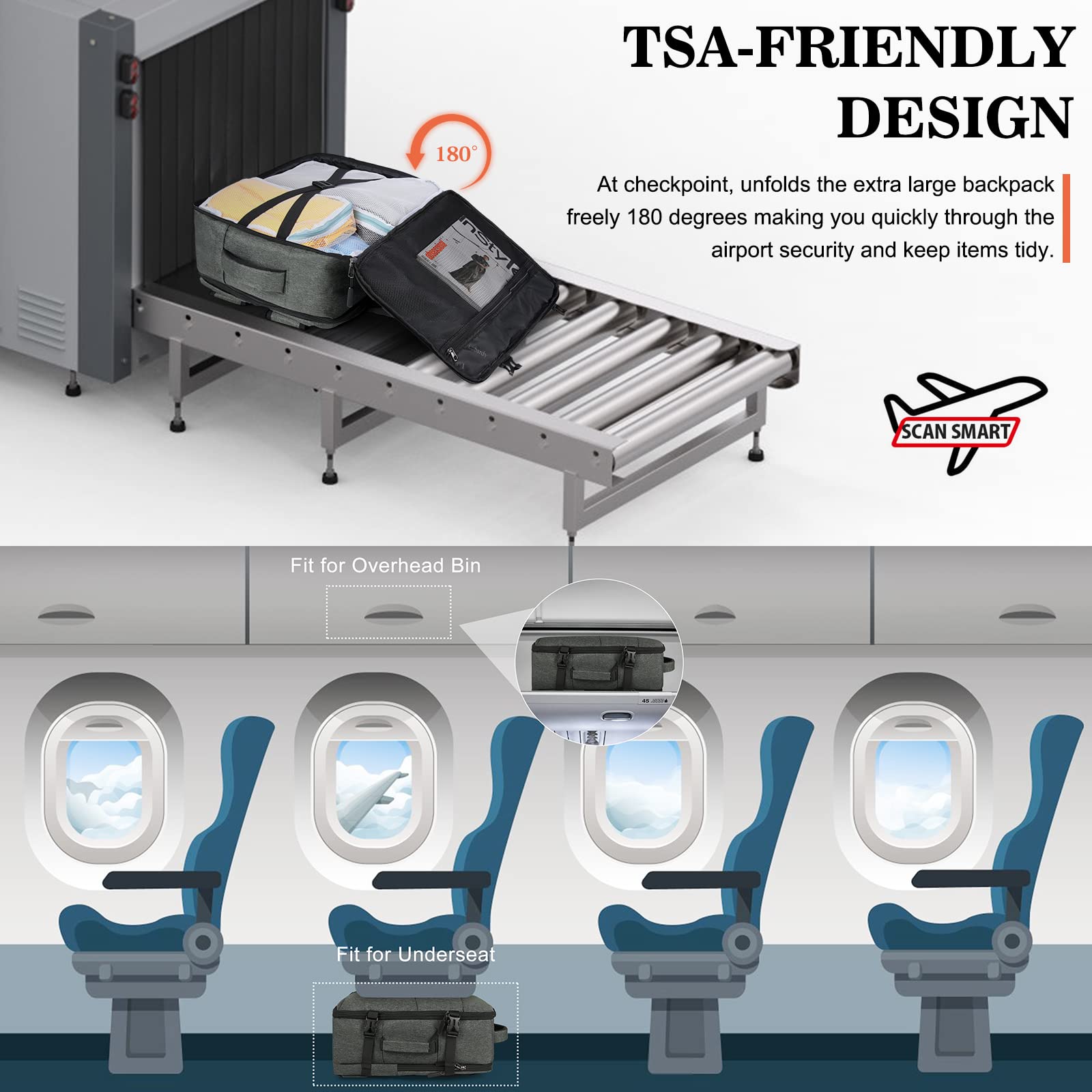 ["✈【Durable And Multifunctional】:This laptop backpack for men is made of waterproof, durable polyester fabric with high-density nylon lining for better tear resistance, water resistance, and durability. The high-quality YKK zipper opens and closes smoothly, and the improved reinforced seams make it more durable. Lubardy backpack can be used as a laptop backpack, travel backpack, business backpack, college backpack.","✈【Large Capacity-40L】:Size: 20.47*13.38*7.87 inches, the backpack has many compartments to meet daily life and travel needs. 1 main compartment for 3-7 days travel essentials such as clothes, shoes, books, and other items. 1 laptop compartment for storing a 17.3-inch laptop. 2 front pockets for toiletries, pens, power banks, notepads, etc. 1 side pocket provides easy access to a water bottle or umbrella.","✈【3 Storage Pouches】:The men's backpack comes with an additional 3 storage pouches in various sizes for clothes, pants, and toiletries to keep your things organized. The full mesh design provides a clear view of the toiletries and makes it easier to find what you need. It can also be used as a laundry bag to protect your clothes from tangling during washing.","✈【TSA-Approved】:This laptop backpack complies with the maximum size allowed on most flights and fits in the overhead compartment and under the seat. The travel backpack features built-in elastic straps to keep clothes in place, and can open up to 180 degrees for quick and clear passage through airport security.","✈【Convenient and Comfortable】:There are handles on the top and side for easy switching between backpacks and suitcases. The reflective stripe design of the backpack makes night travel safer. The breathable sponge mesh design of the shoulder straps promotes ventilation and heat dissipation, reducing pressure on the shoulders. Luggage straps secure the backpack to the suitcase for easy transport, ideal for business, hiking, and travel."]