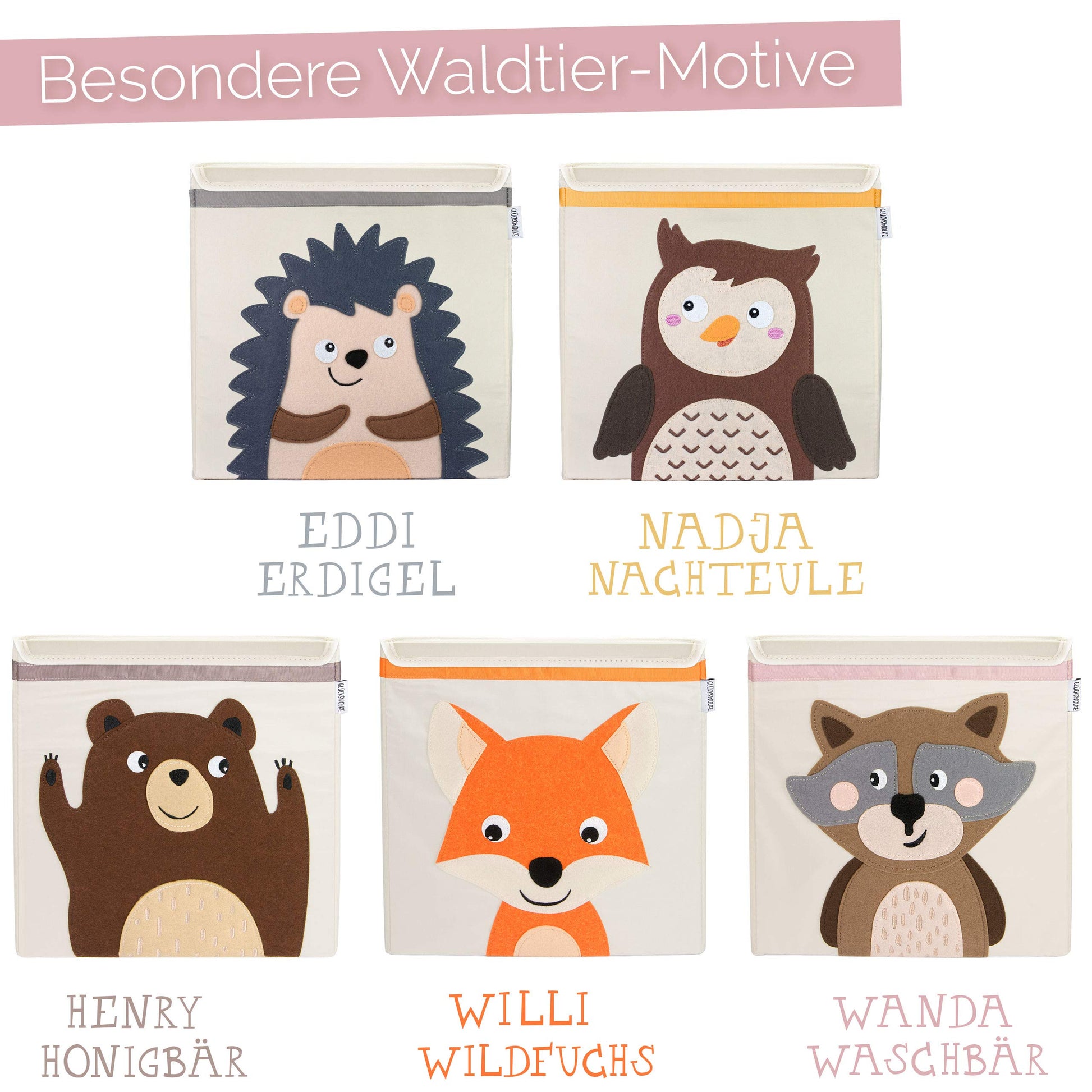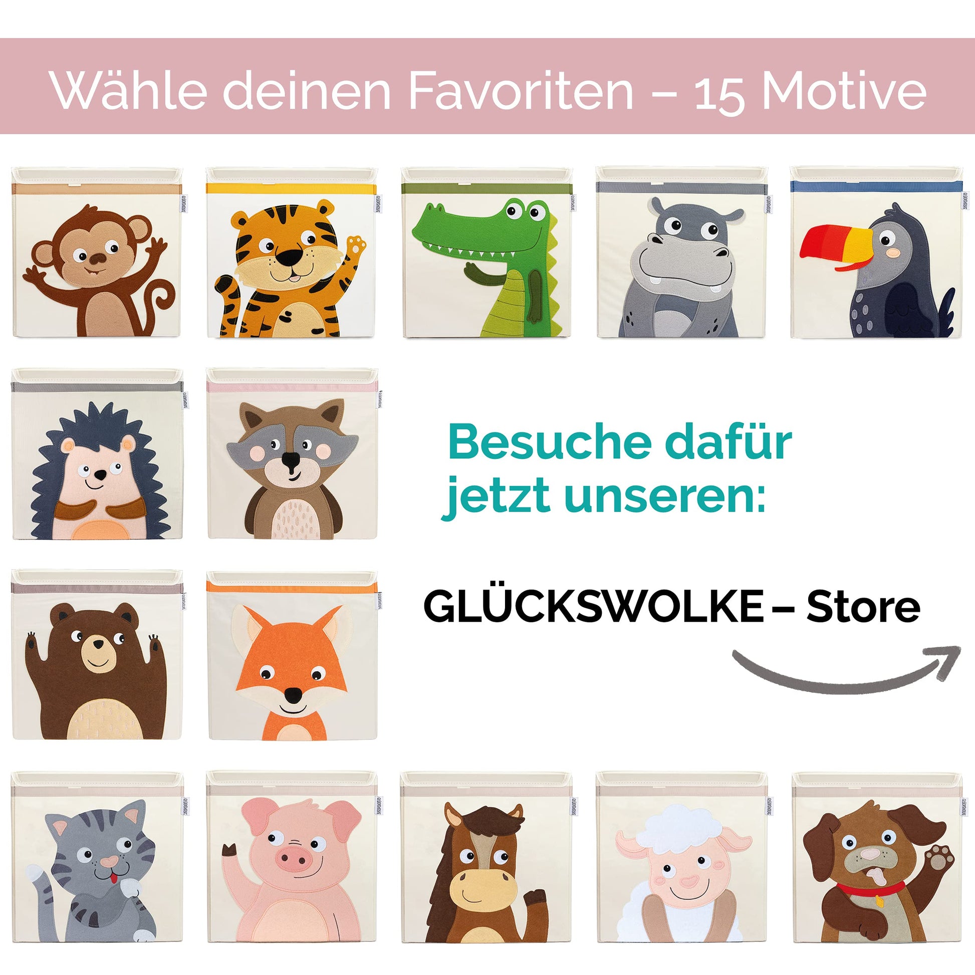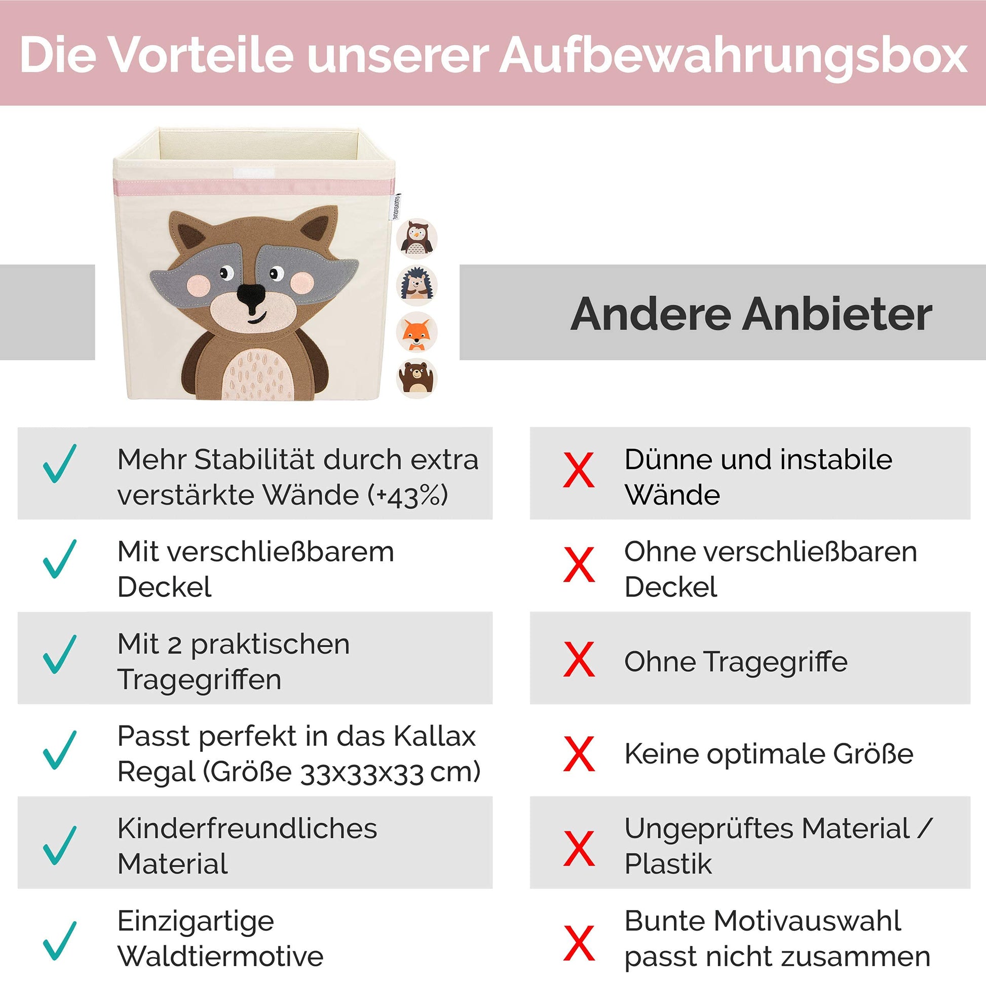 LUCKY CLOUD Kids Storage Box - 15 designs I Toy chest with lid for children's room I Toy boxes (33x33x33) for storage in the Kallax shelf I Forest animals design Raccoon