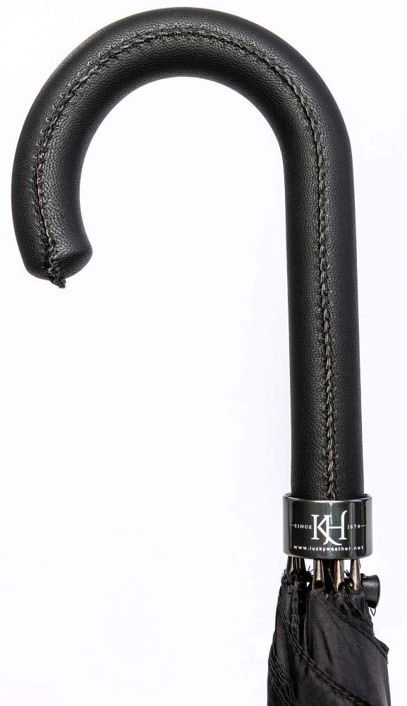 HIGH QUALITY: The colorful large umbrella with automatic opening has a diameter of approximately 105 cm when opened. The length of the black steel shaft is about 87 cm and it has a high-quality faux leather handle. It weighs around 430 grams. Reliable protection from rain and also from sunlight due to its UV protection. The fabric is made of 100% polyester. The closure strap matches the design and closes with a high-quality snap button.