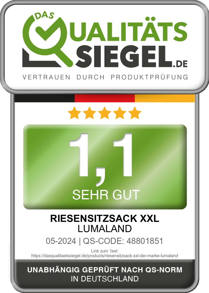 Durable & portable: Thanks to extra strong seams, the XXXL bean bag (380 L) can handle anything! It can be moved super quickly & easily from A to B. The giant bean bag becomes a mega highlight, especially when combined with the Cord Pouf bean bag and of course with other LUMALAND team members - for extraaaa relaxation moments.