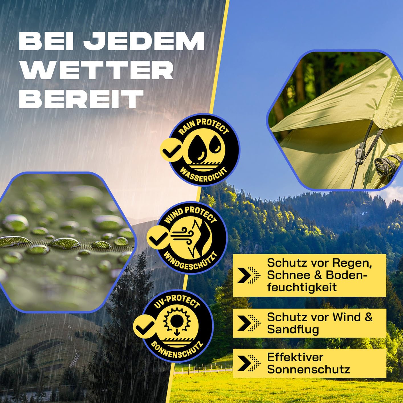 ["LUMALAND OUTDOOR 3 PERSON POP UP TENT: Ideal for camping, hiking, trekking, travel, beach, garden, or as a festival tent; for an unforgettable holiday in nature - plan a trip to the campsite or your next survival expedition! Effective sun protection, rain protection, wind protection, and protection from sandfly","INNOVATIVE FOLDING SYSTEM, ULTRA-FAST QUICK UP SETUP: Thanks to the clever construction system, the tent can be set up quickly and easily in just a few steps, and dismantled just as quickly; easy, even for beginners - you simply have to pull the securing rope, unfold the joint poles, and attach the included pegs for final fixation - no classic tent assembly work required","WATERPROOF AND WEATHERPROOF: Ventilation opening in the roof ensures optimal air circulation, and the separate ventilation cover above the tent roof protects against rain and snow; thanks to the additional mosquito net at the entrance, you can also stay undisturbed in the tent with the door open - perfect as a family tent, with enough space for 3 people - incl. guy lines, pegs, and carrying bag with zipper","TOP EQUIPMENT: Raised groundsheet protects against moisture and dirt; with a practical inner pocket for small items like phone, glasses, keys, etc. - no matter where you stay, no matter what the weather is like; with Lumaland Outdoor tents, you are always prepared for everything - outer tent and inner tent are connected, making assembly even easier; lightweight yet stable - weight with bag: 8.8 lbs","PERFECT DIMENSIONS, HIGH-QUALITY MATERIAL: Inner tent dimensions: 82.7 x 74.8 x 43.3 inches, Outer tent dimensions: 84.6 x 76.8 x 47.2 inches, Poles: Fiberglass 0.33 inches, Outer tent material: 190T Polyester, Inner tent: breathable 180T Polyester and mesh - Tent floor in all Lumaland tents made of 115G PE material with water column of 3000 mm (tent floors are considered waterproof according to DIN ISO 10966 from a water column of 2000 mm), Outer tent PU-coated with water column of 3000 mm (considered waterproof according to DIN standard from 1,500 mm)"]