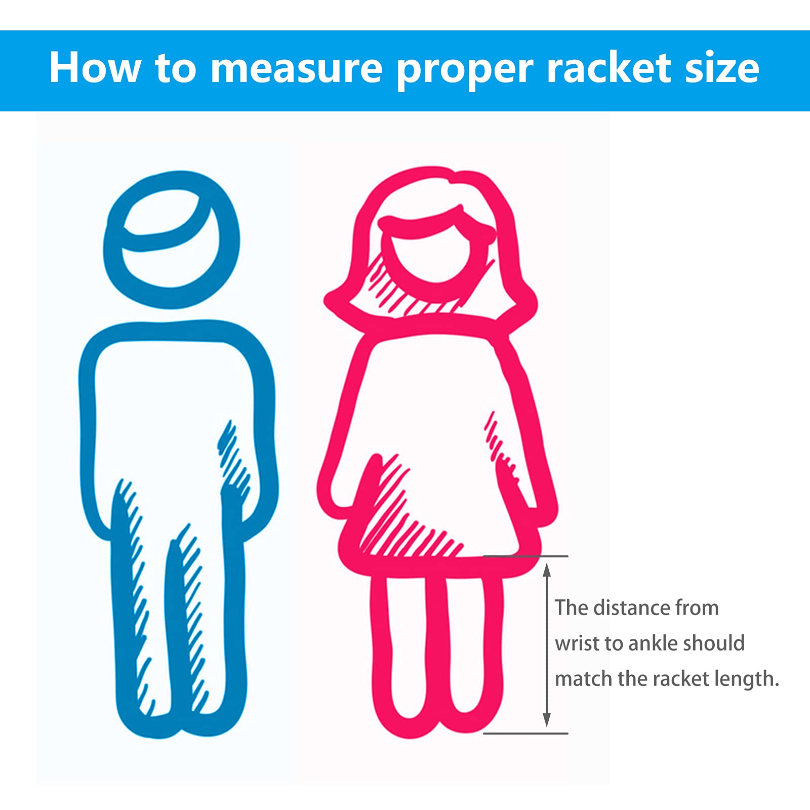 "【How to Choose a Tennis Racket for Kids and Juniors】: 19 inches: for ages 3-5 toddlers; 21 inches: for ages 4-6 children; 23 inches: for ages 7-9 teens; 25 inches: for ages 10-12 juniors, suitable for boys and girls.",