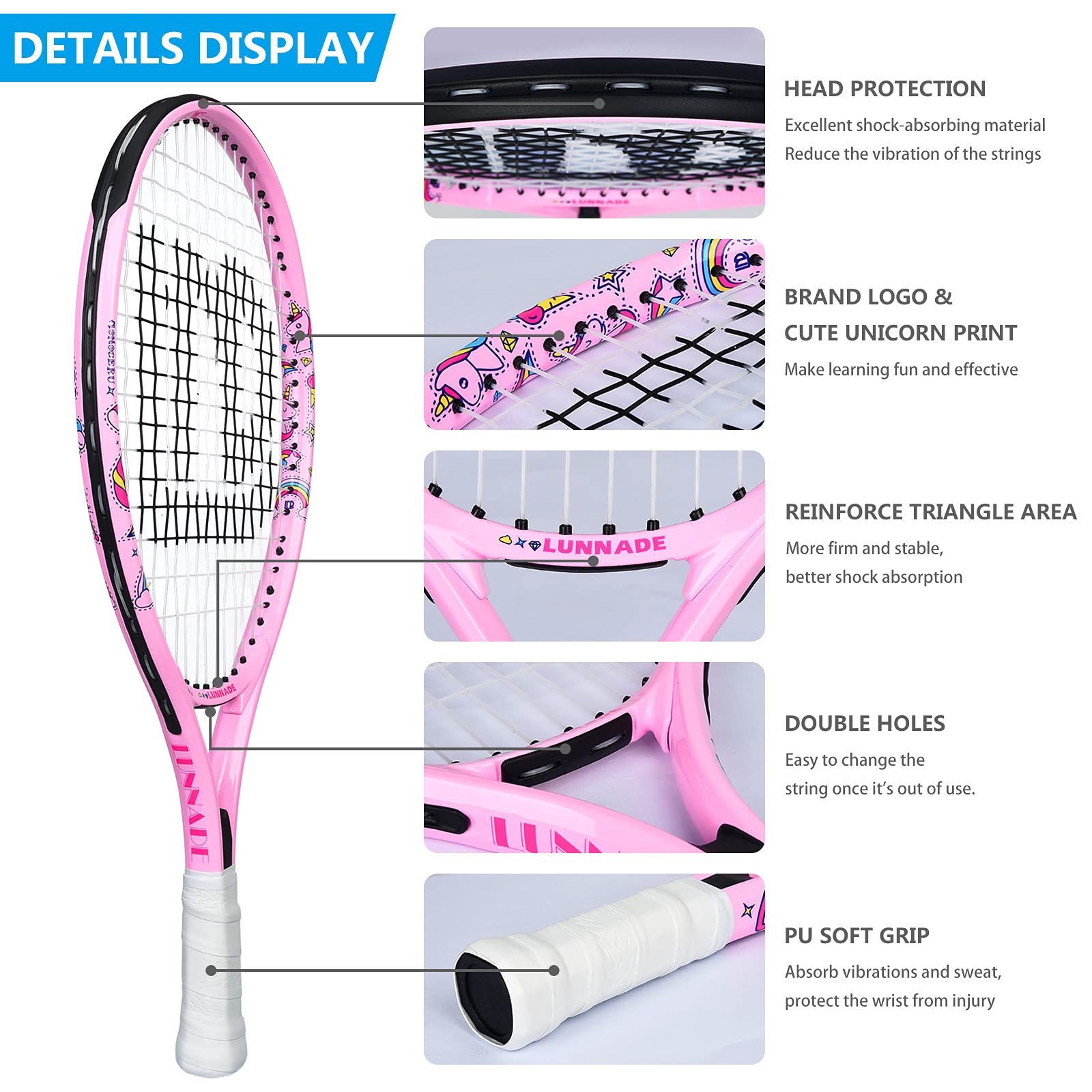 LUNNADE Kids Junior Tennis Racket, 19/21/23/25 inch youth tennis racket with cover, suitable for beginner boys and girls aged 3-12.