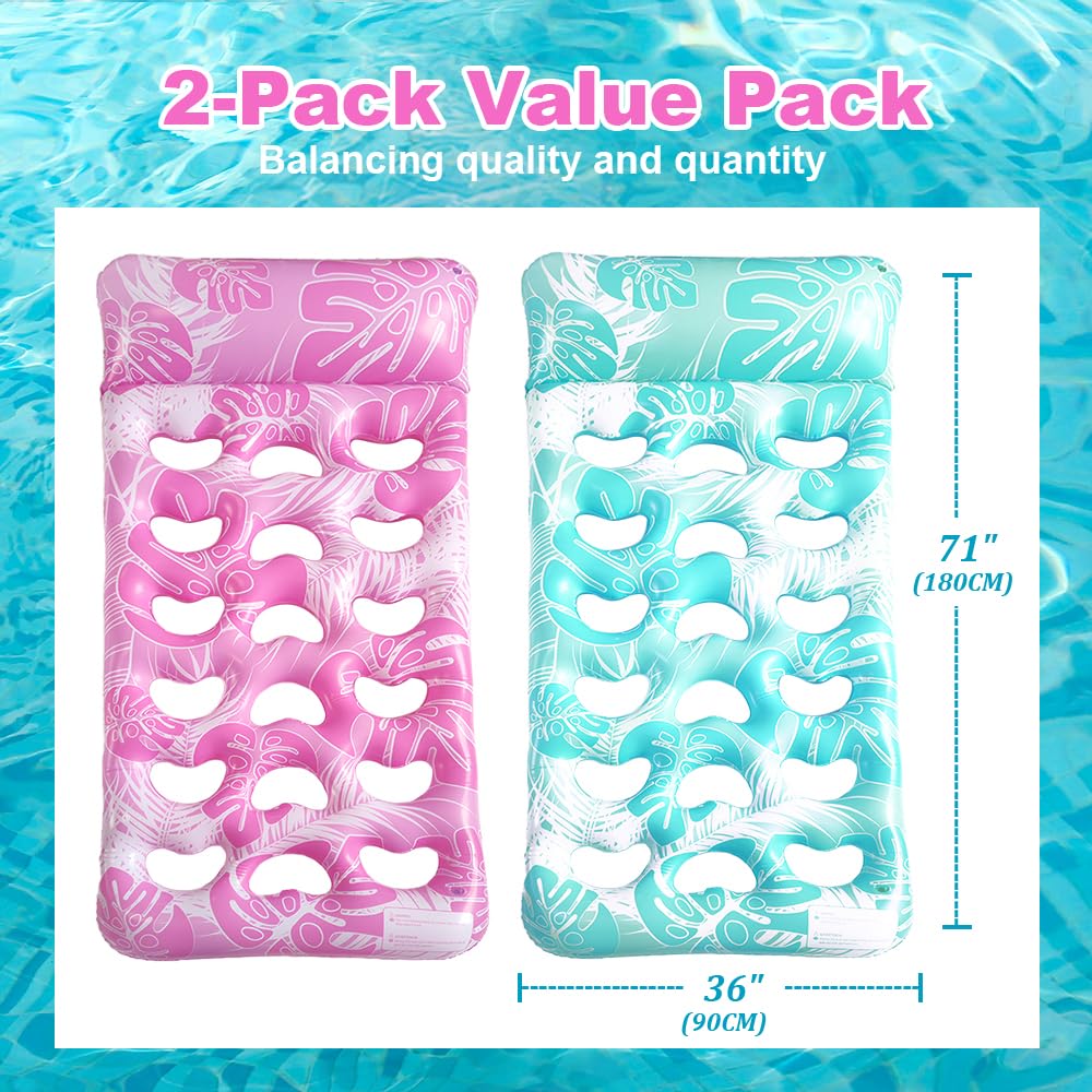 LUSTERMOON Inflatable large pool float for adults, pool chair float and lounger with cup holders for summer, pool, lake, beach, 2 pieces (blue + pink)