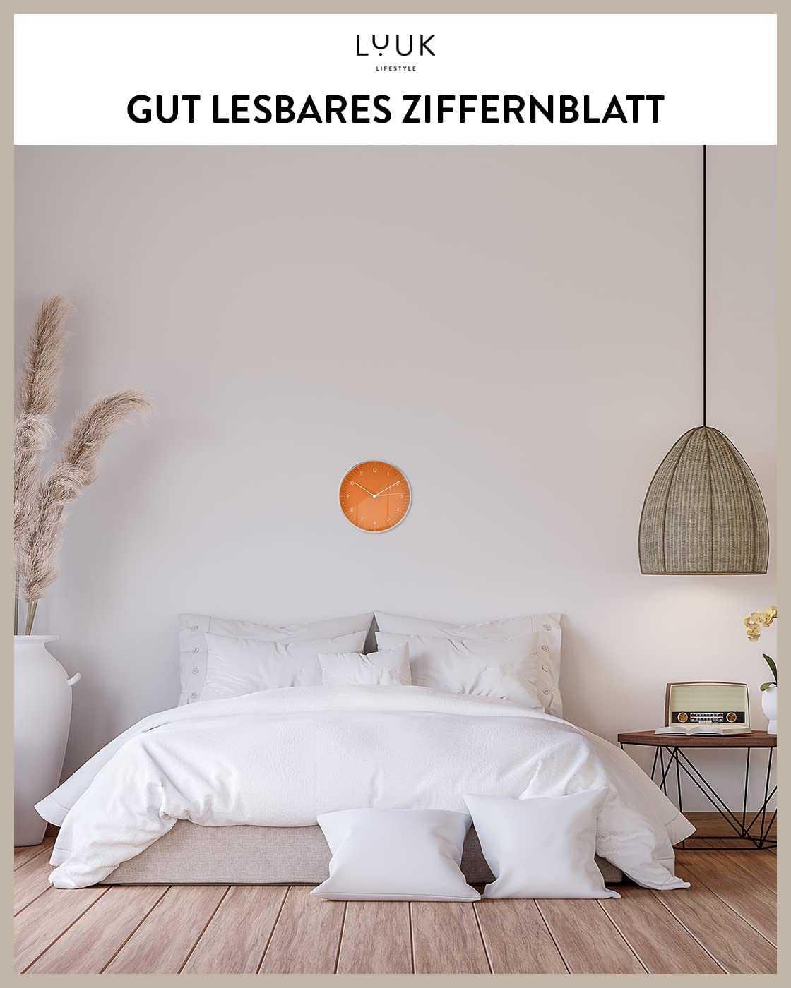 ✔️URBANE LIFESTYLE - The wall clock fits in any apartment (e.g. living room, kitchen, hallway, office, bathroom, children's room, hall, basement, loft, old building, new building, etc.) and can be ideally combined with other furnishings.