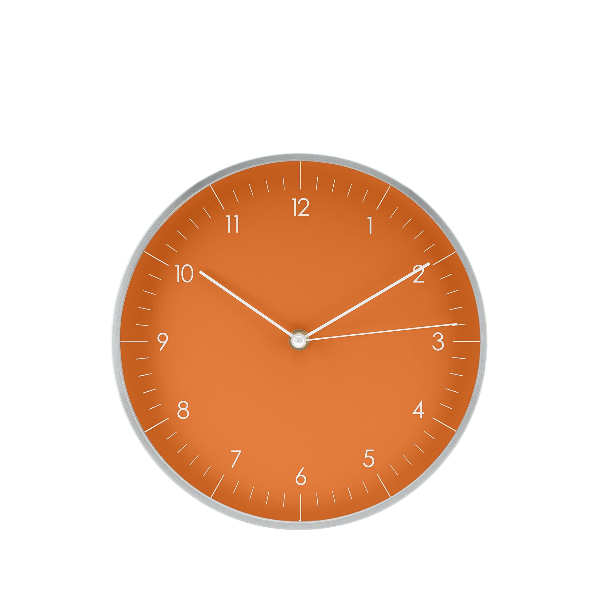 LUUK LIFESTYLE Quartz Wall Clock with Silent Movement, Simple Design, for Office, Kitchen, Bathroom, Housewarming Gift, 24cm in Orange and Silver.