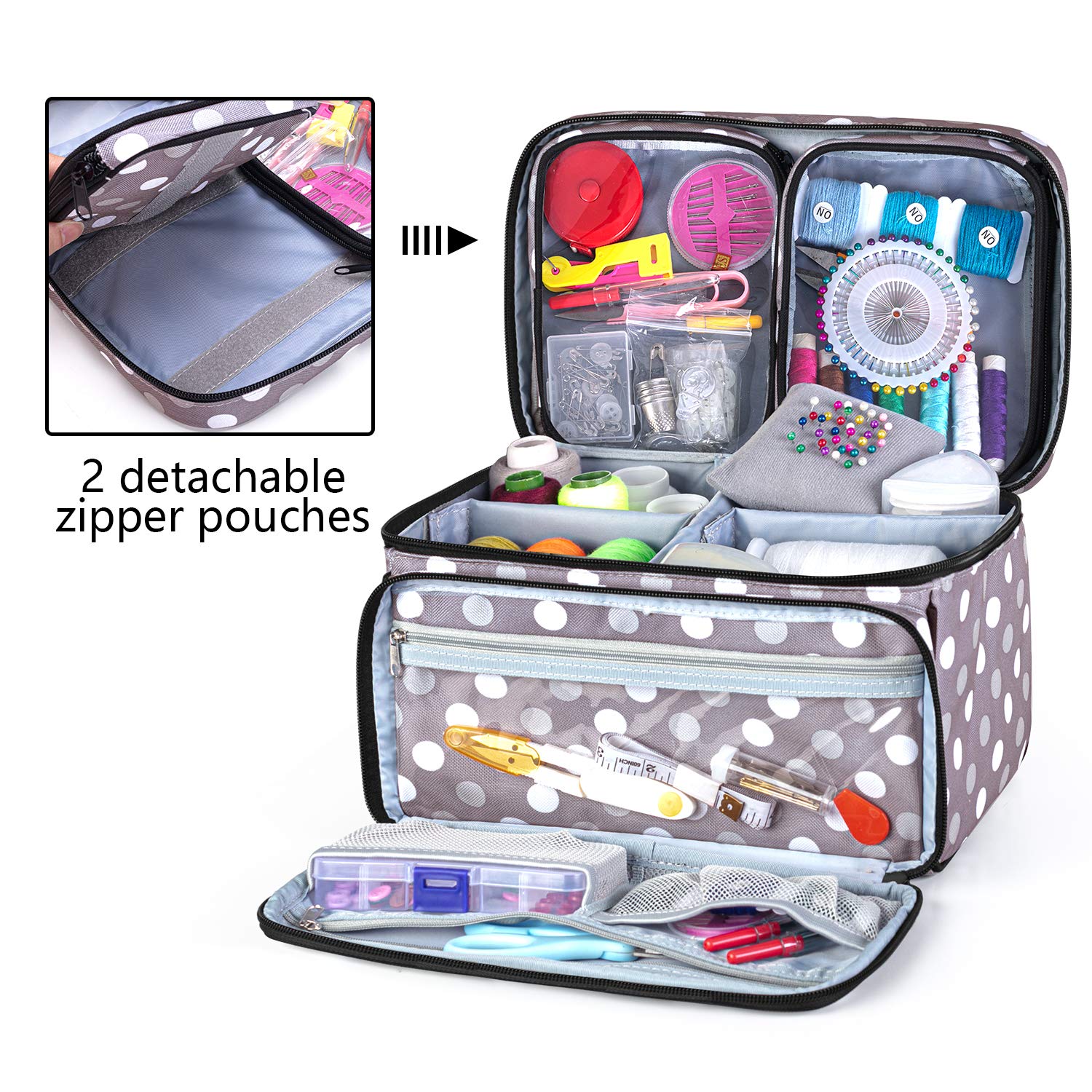 Luxja Sewing Accessories Bag, Sewing Kit Storage Bag, Yarn Bag for Wool, Sewing Tool Tote for Beginners, Travelers, Sewing Classes, Gray Dot