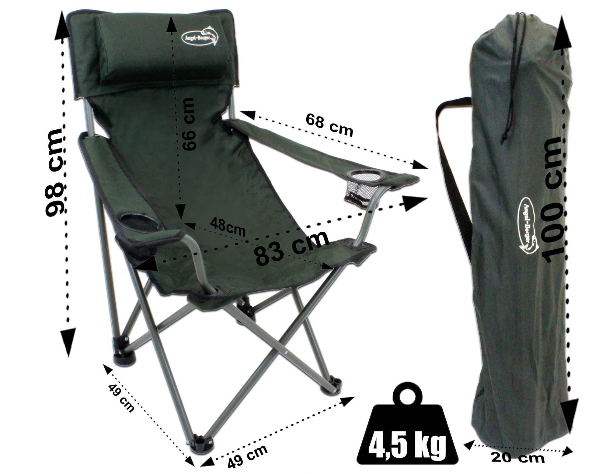 Luxury folding chair with drink holders, padding, and armrests in green.