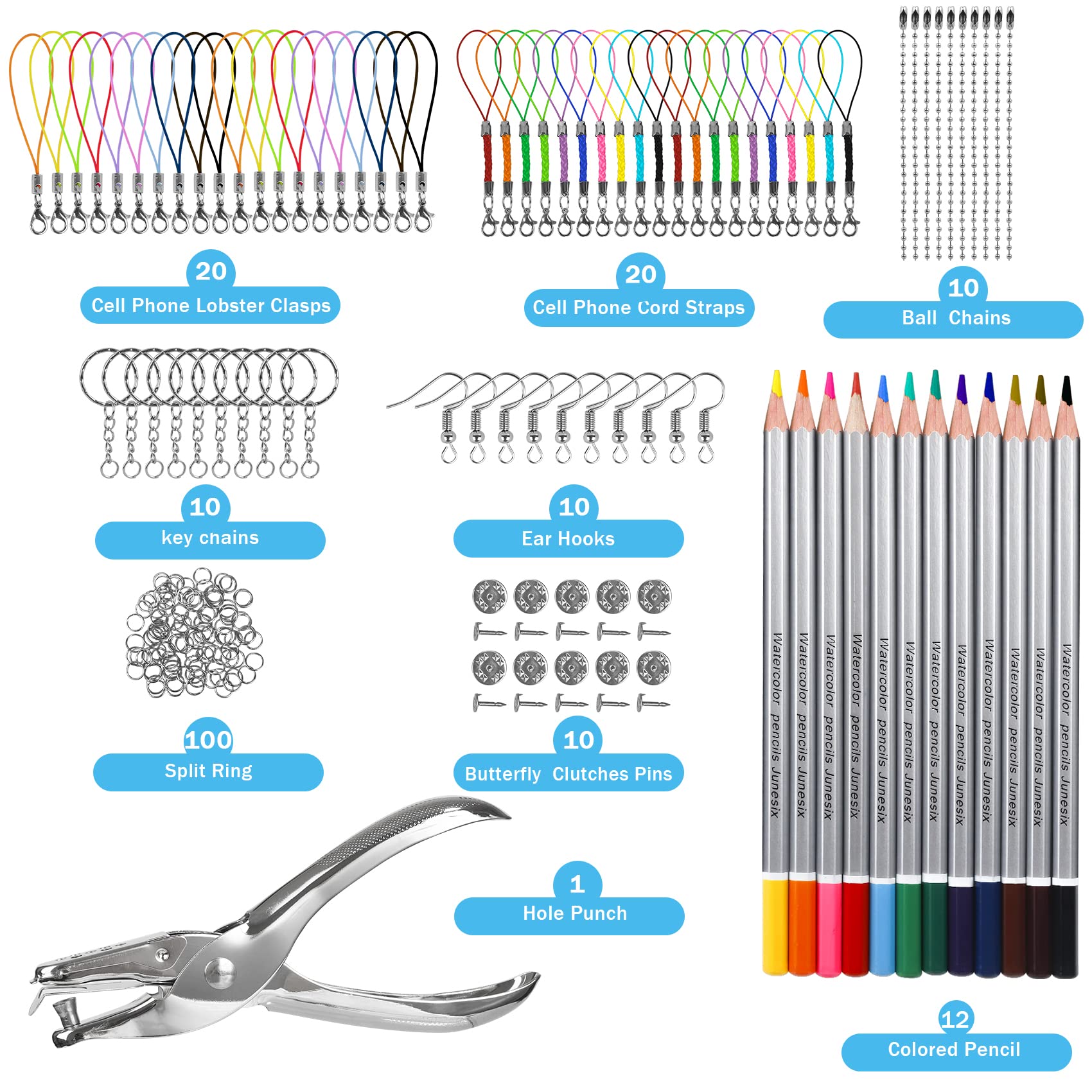 👉Various Keychain Crafting Set for Jewelry DIY: Each shrink film has a size of 29*20cm, Thickness is 0.3mm, one-sided rough grinding. This shrink film keychain set includes 10 keychains, 10 ball chains, 10 ear hooks, 20 phone straps, 20 lobster clasps, 20 butterfly clasps (10 sets), 100 open jump rings.