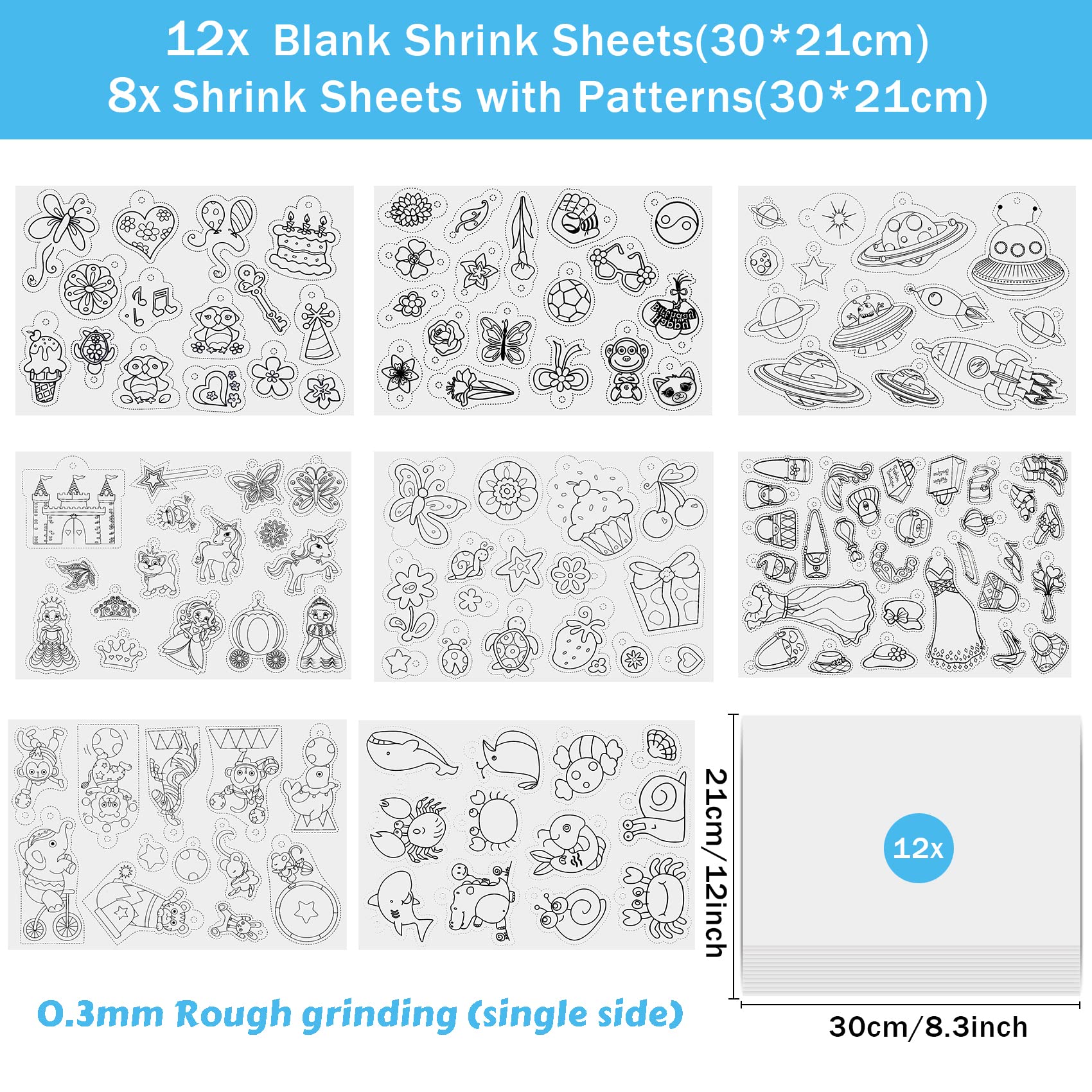 LUZOON Shrink Film 218 Pieces Shrink Film for Crafting Including A4 Shrink Film Set Keychains, Locks, Pencils, Hole Punch for Kids DIY Crafts (A4-with Pattern)