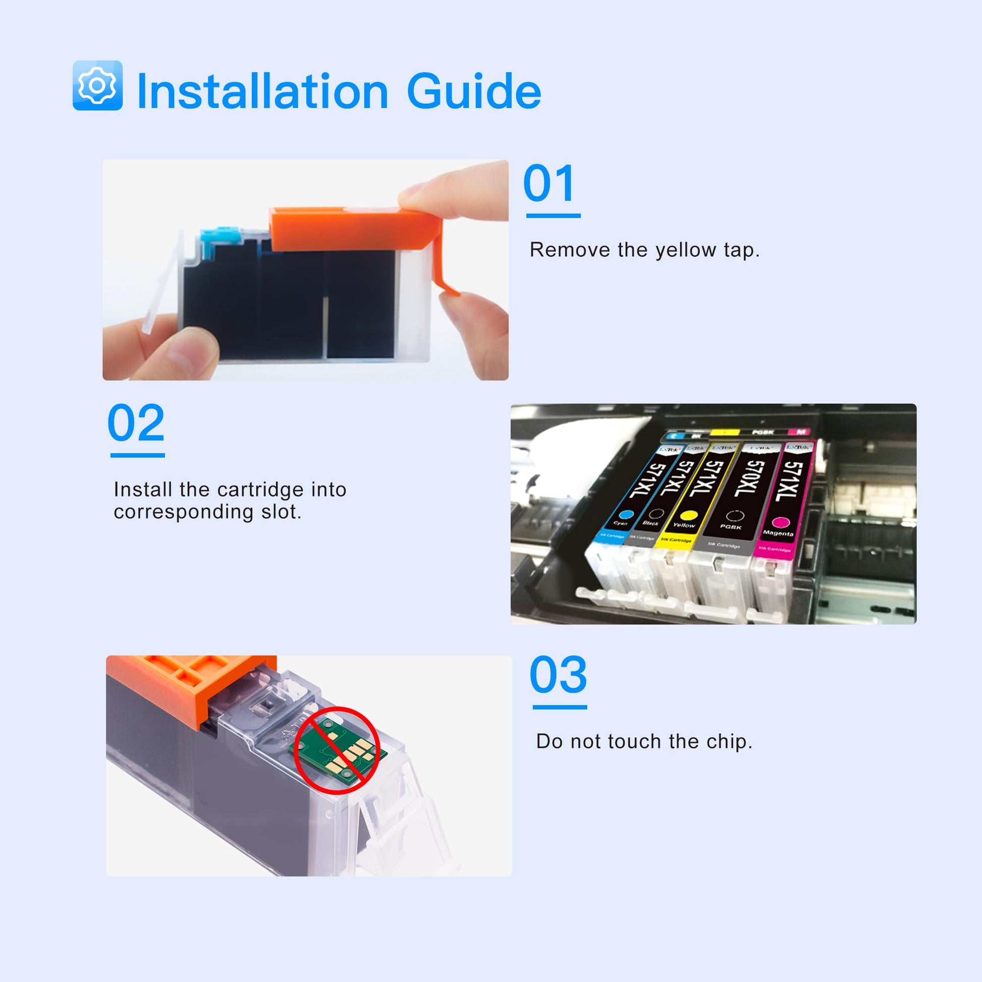["Product Name: LxTek 570XL 571XL Compatible for Canon PGI-570 CLI-571 XL Ink Cartridges for Canon TS5050 Printer (Non-OEM)","571 XL 570 XL Compatible for Canon 571 for PIXMA MG5700, MG5750, MG5751, MG5752, MG5753, MG6800, MG6850, MG6851, MG6852, MG6853, TS5050, TS5051, TS5053, TS5055, TS6050, TS6051, TS6052 Printers","Capacity and Page Yield: 570 XL PGBK 24 ml, 680 pages; 571 XL Black 13 ml, 500 pages; Cyan/Magenta/Yellow 13 ml, 680 pages, for Canon TS 5050 cartridges (Based on 5% coverage)","Package Contents: 570 571 XL 4 PGBK, 2 Black, 2 Cyan, 2 Magenta, 2 Yellow, for Canon MG5750 cartridges (Packaging may vary)","All Our Ink Cartridges Offer Clear Text and Vibrant Colors","These 570XL 571XL Ink Cartridges are protected by Transparency by Amazon, ensuring authenticity of each unit"]