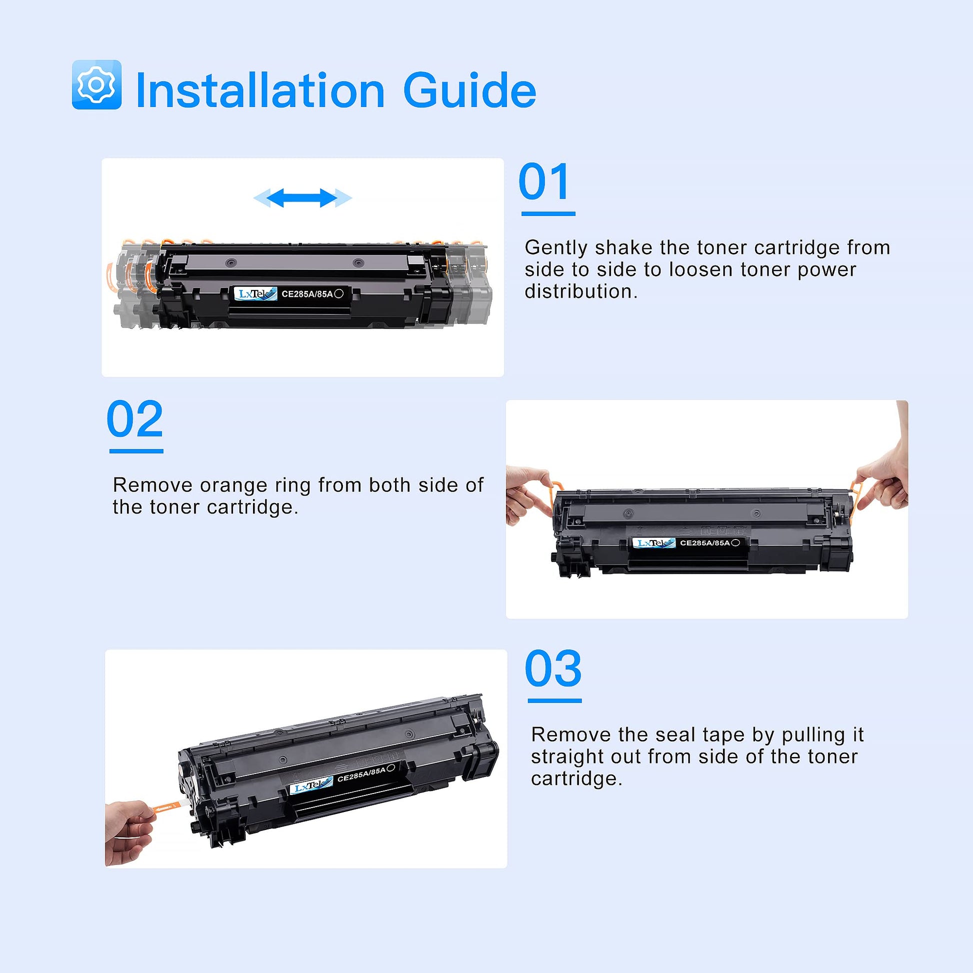["LxTek CE285A 85A Compatible Toner for HP CE285A Black Toner for HP LaserJet P1102W Toner (Non-Original)","Page Yield: 1,600 pages per CE285A Black Toner for HP LaserJet P1102 Toner, at 5% coverage of A4","LxTek CE285A 85A Compatible Toner for HP LaserJet Pro P1102 / P1102W / P1100 / P1101 / P1103 / P1104 / P1104W / P1106 / P1108 / P1109 / M1130 / M1132 / M1134 / M1132MFP/ M1134MFP / M1136 / M1136MFP / M1210 / M1210MFP / M1212 / M1212NF / M1213NF / M1217NFW Printers","Package Contents: 2-pack 85A CE285A Black Toner for HP LaserJet P1102W Toner","Our 85A Toner for HP LaserJet P1102W Toner Delivers Clear and Sharp Printing Results","These 85A CE285A toner cartridges are protected by Transparency by Amazon, verifying the authenticity of each unit"]