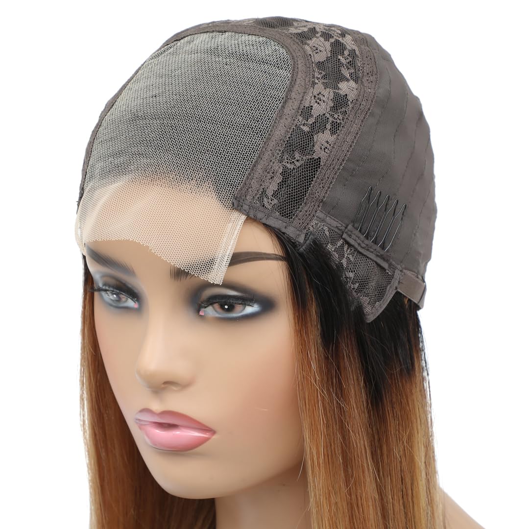 LYBYL Women's Human Hair Lace Front Wig 4X4 Lace Closure Wig Pre Plucked T1B/30 Blonde Curly Ombre Wig 22 inches (55.88cm)