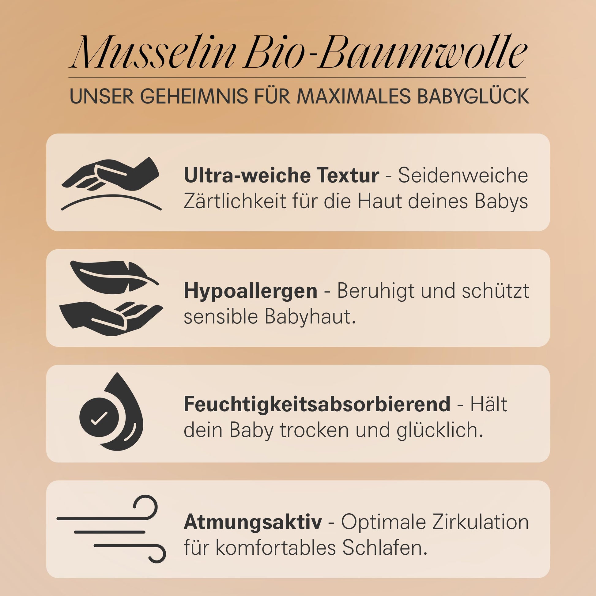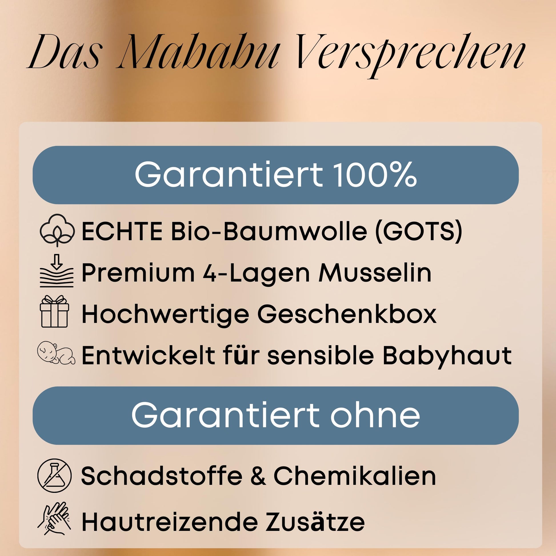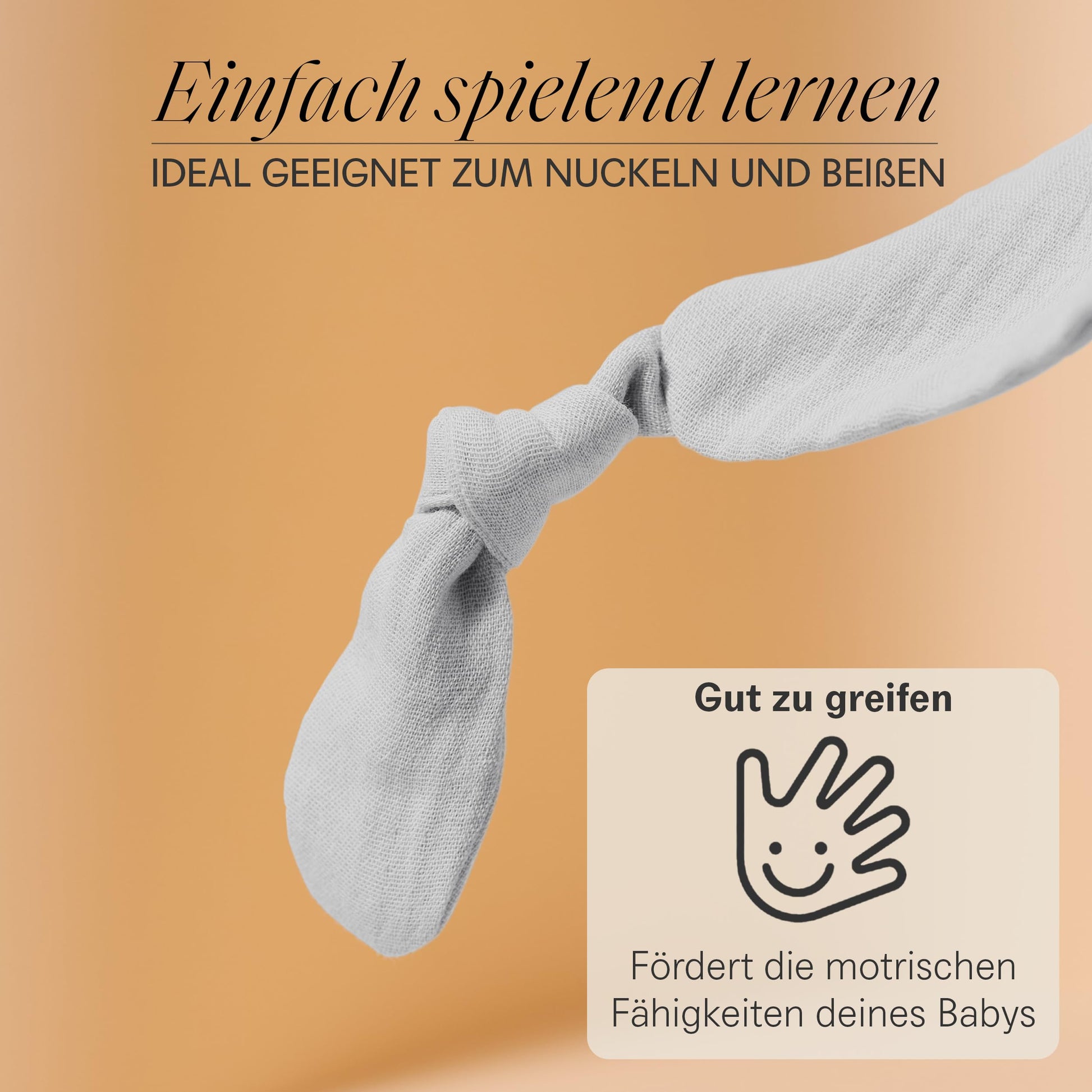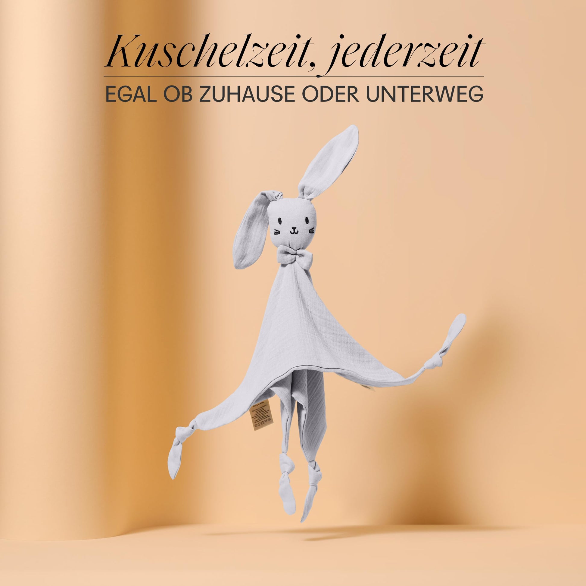 Mababu cuddly blanket baby muslin - 100% GOTS organic cotton - cuddly toy bunny - gift for birth, 4-layered, extra soft, for newborns, boys & girls, washable, as a comfort blanket